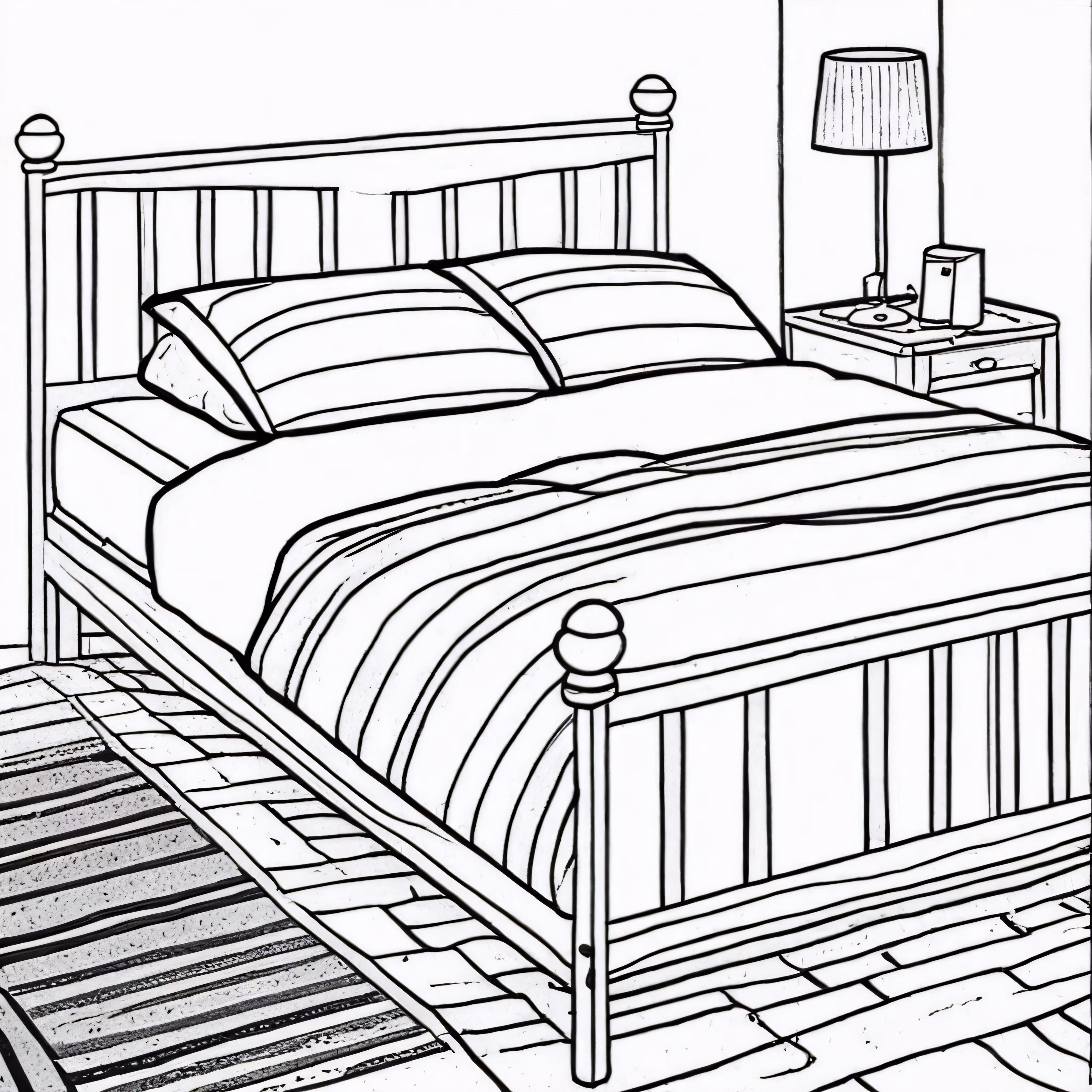 High resolution picture, free to use, a bed with two pillows in the corner and a nightstand next to it