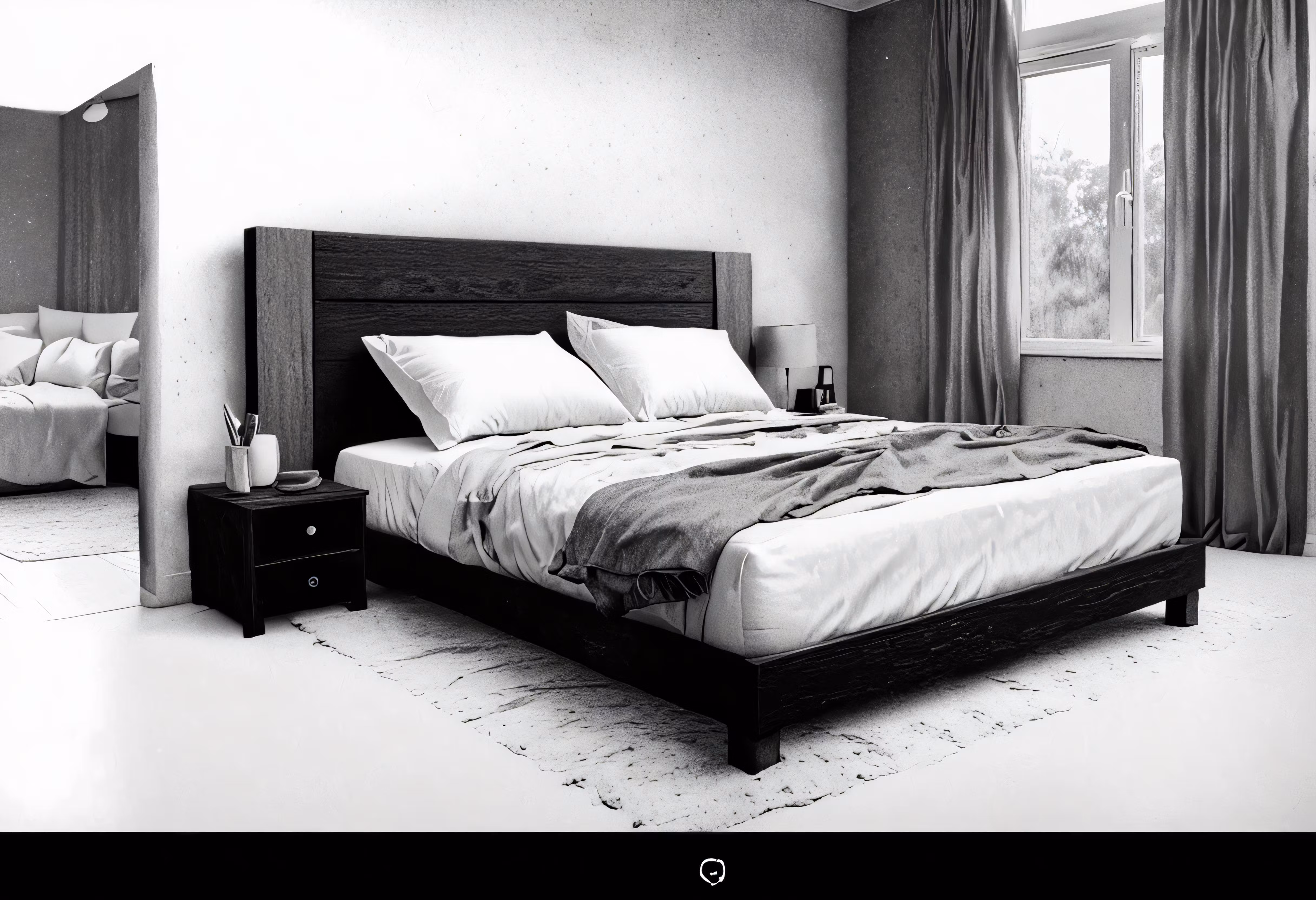 High resolution picture, free to use, a bedroom with a bed, nightstands and windows