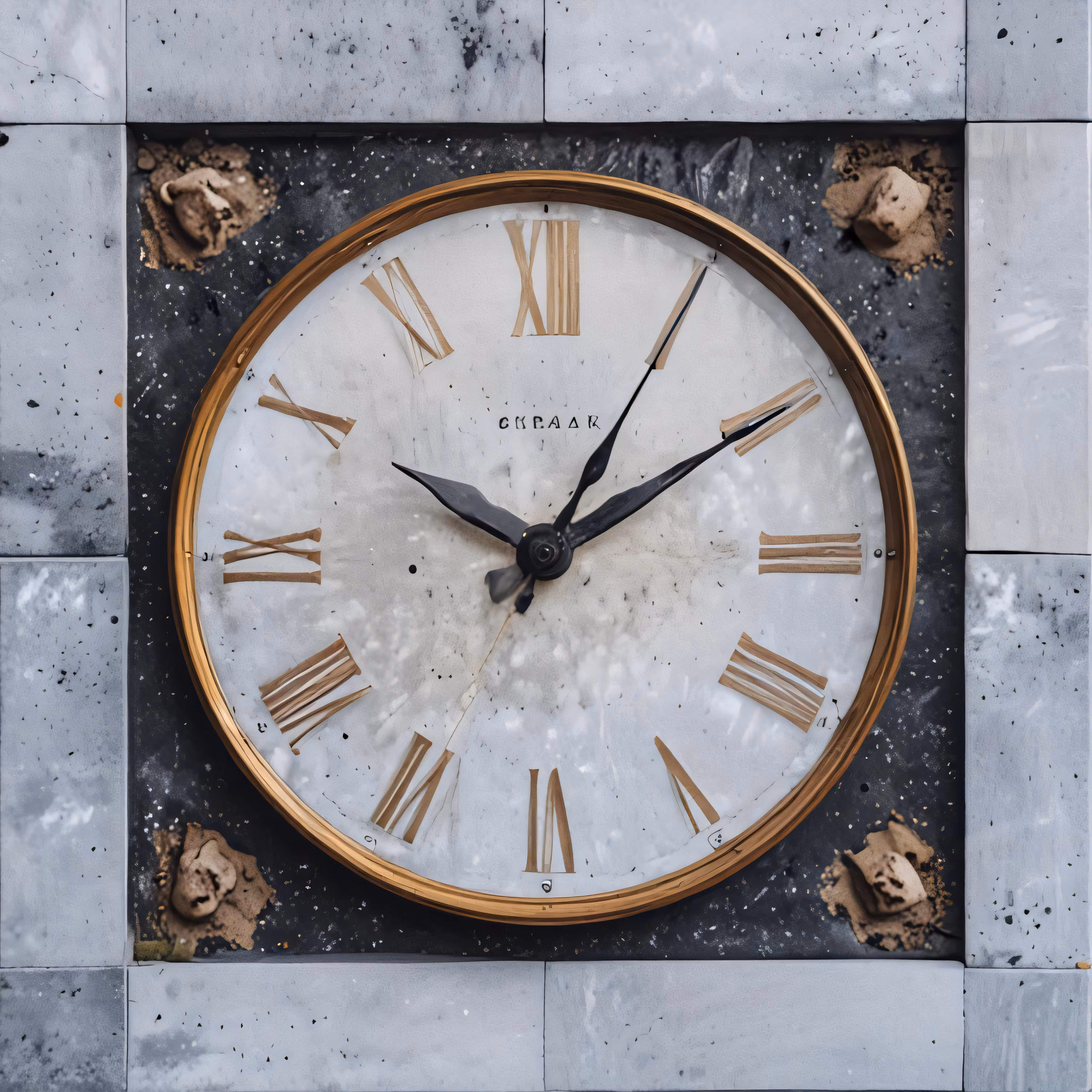 High resolution picture, free to use, a big clock on the ground with faces and hands