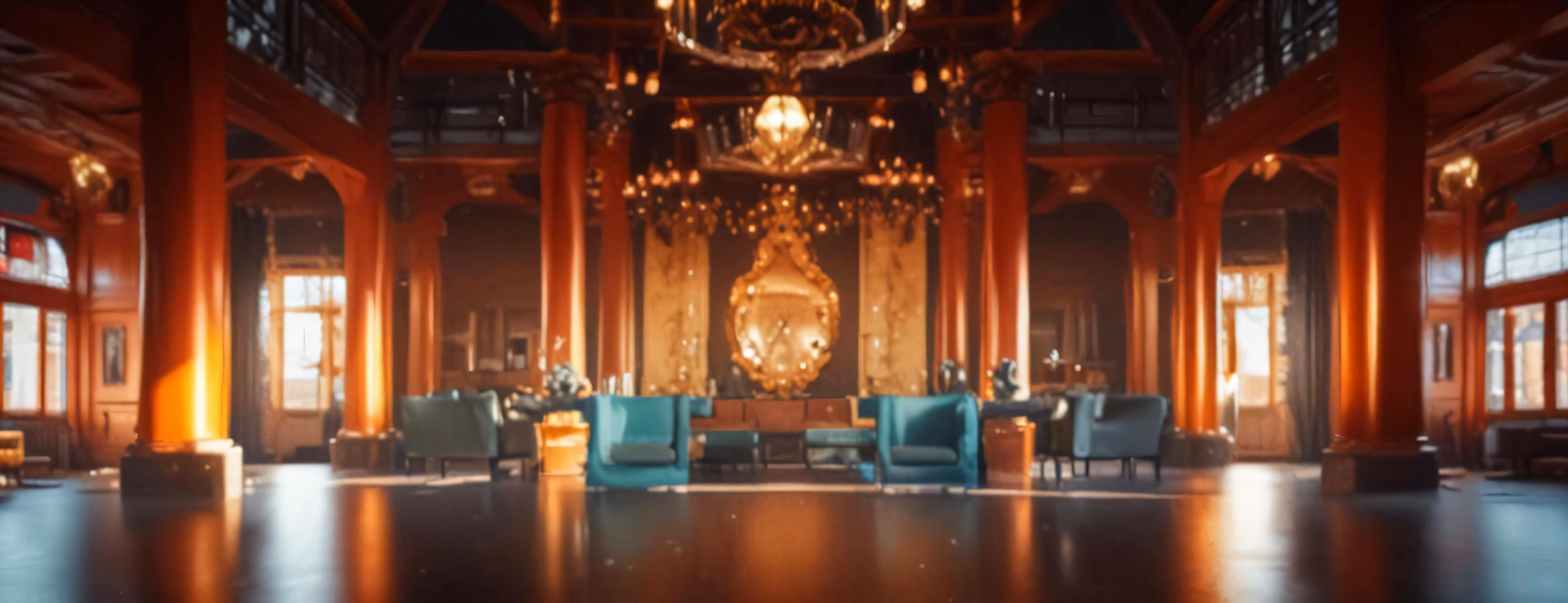 High resolution picture, free to use, a big room with some chairs and a chandelier