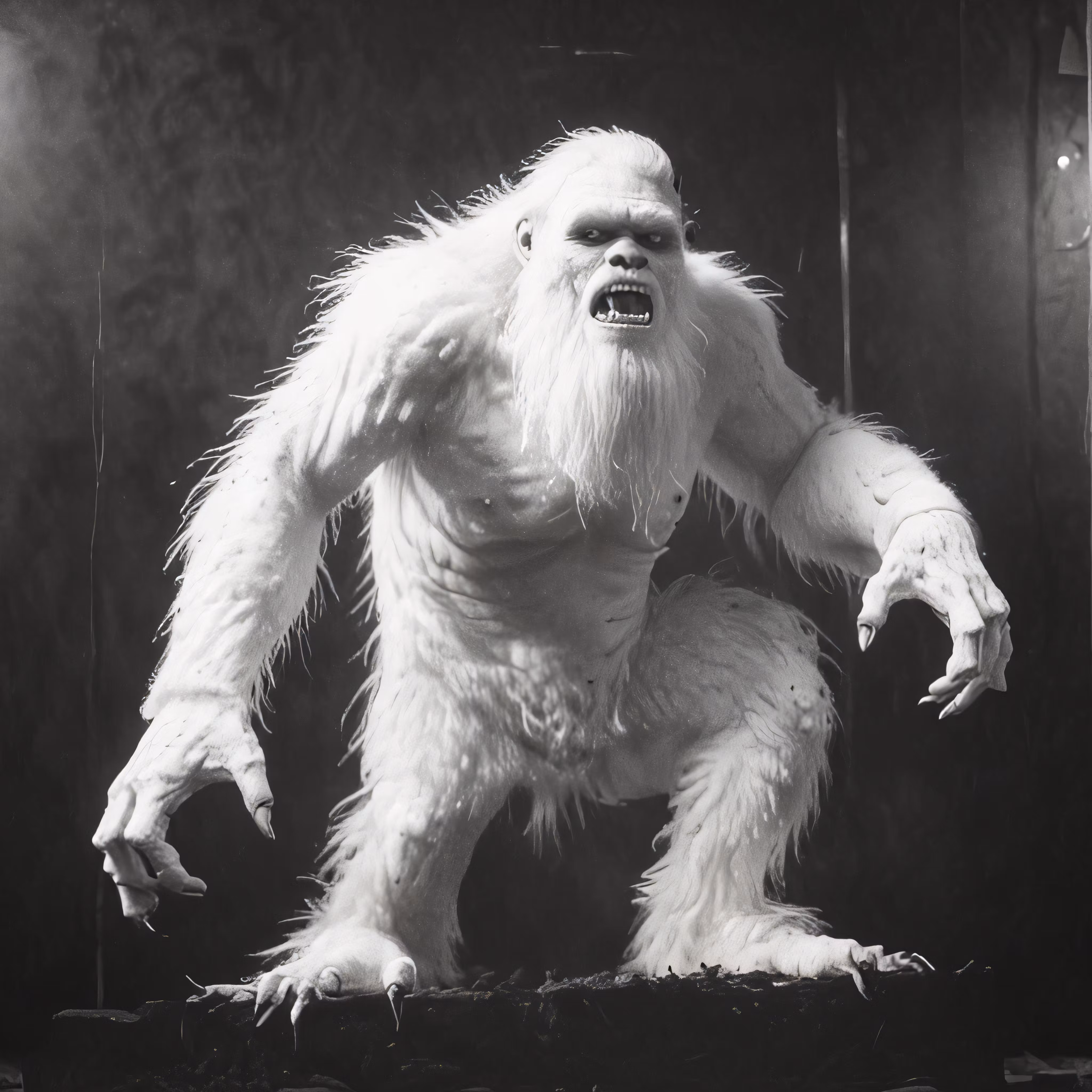High resolution picture, free to use, a big white monkey posing for a black and white photograph