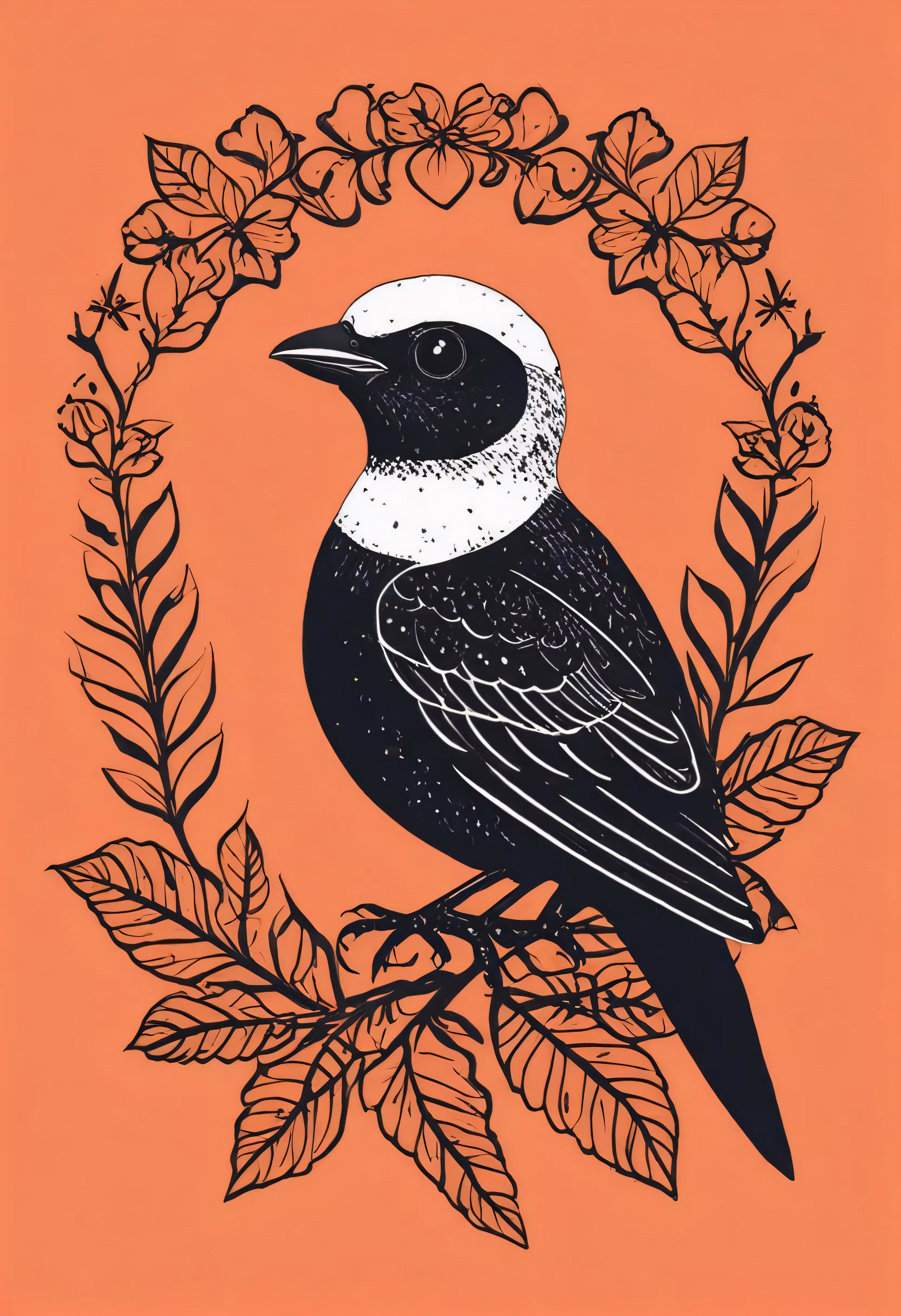 High resolution picture, free to use, a bird with black and white feathers and a red background