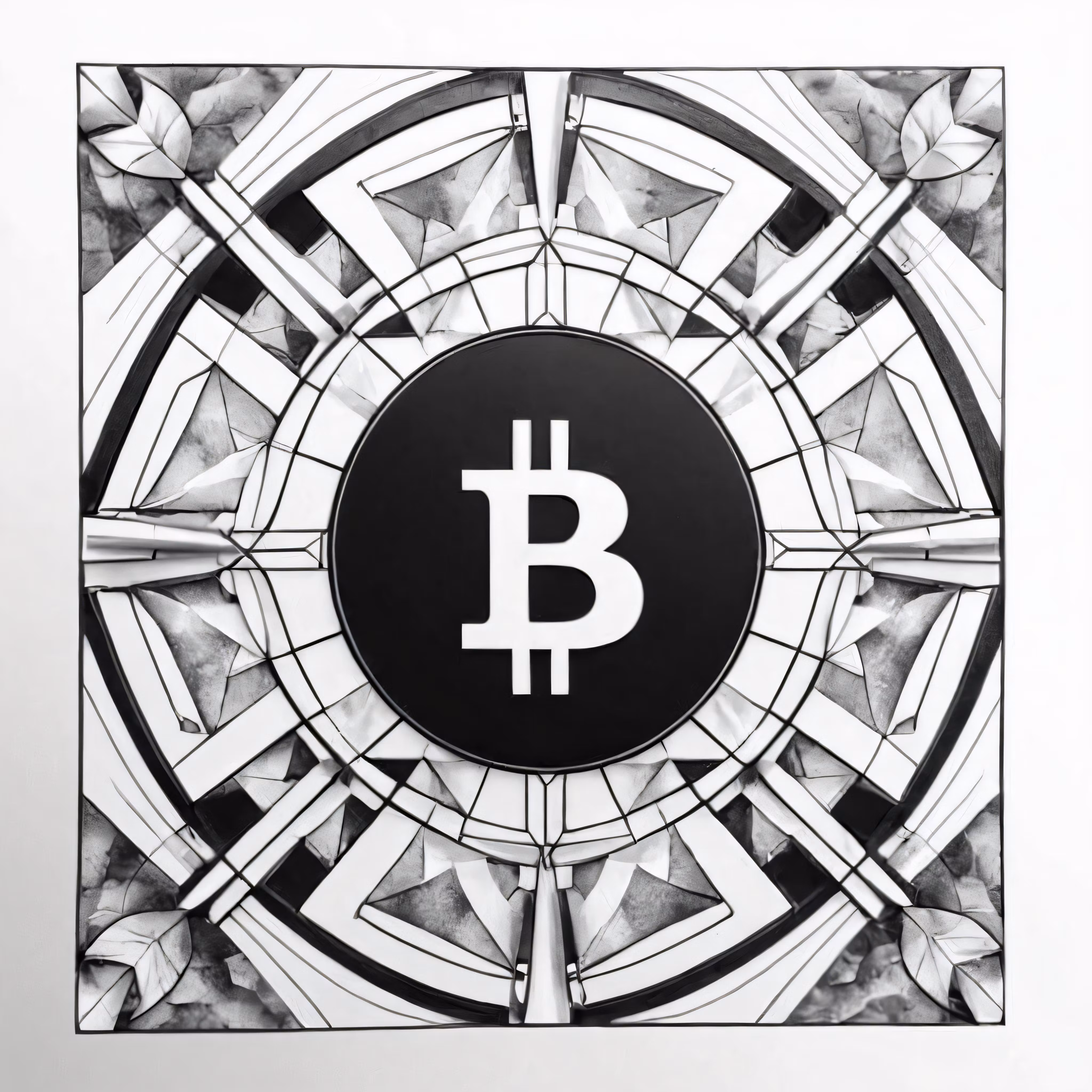 High resolution picture, free to use, a bitcoin logo is displayed on a piece of art