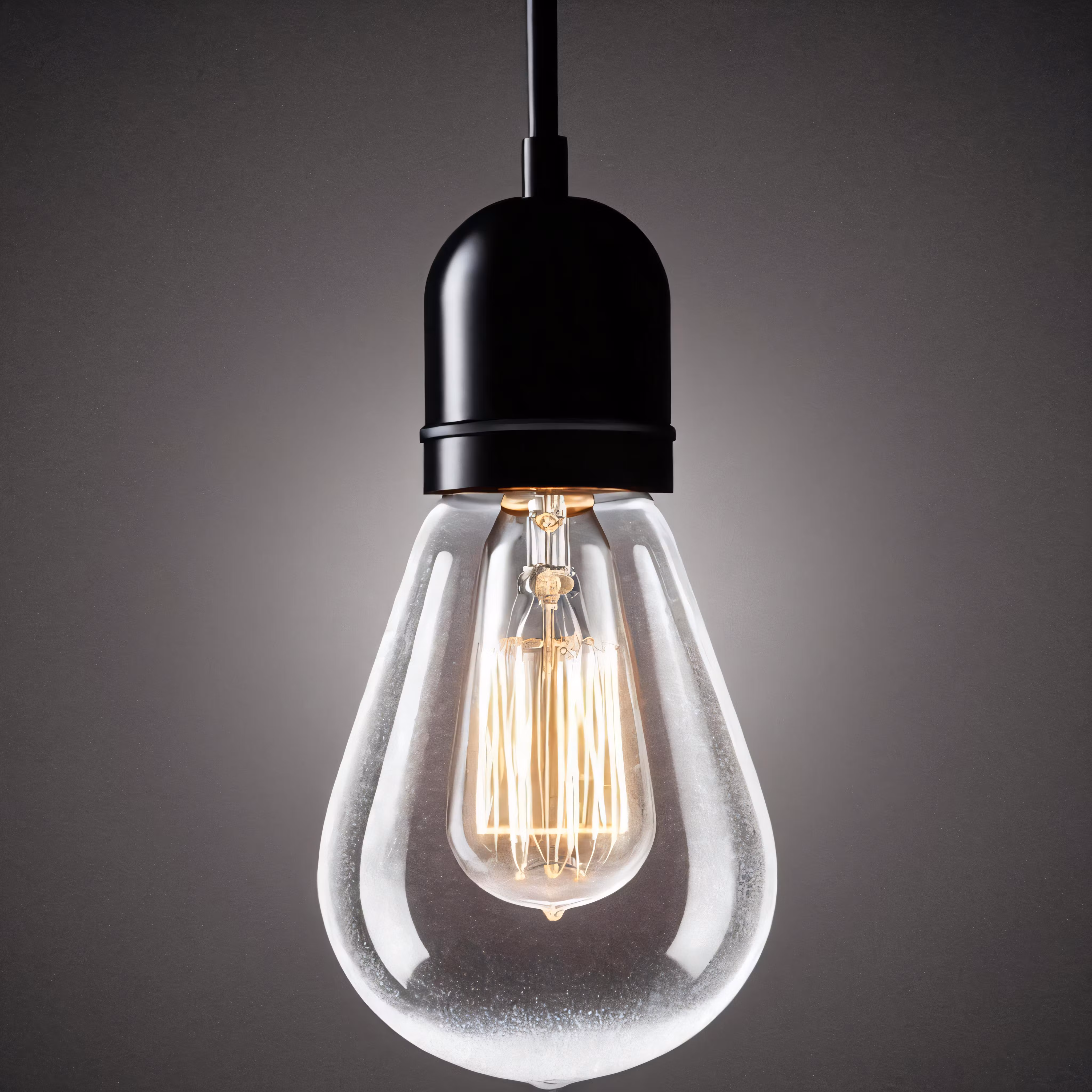 High resolution picture, free to use, a black and clear bulb hanging from the ceiling