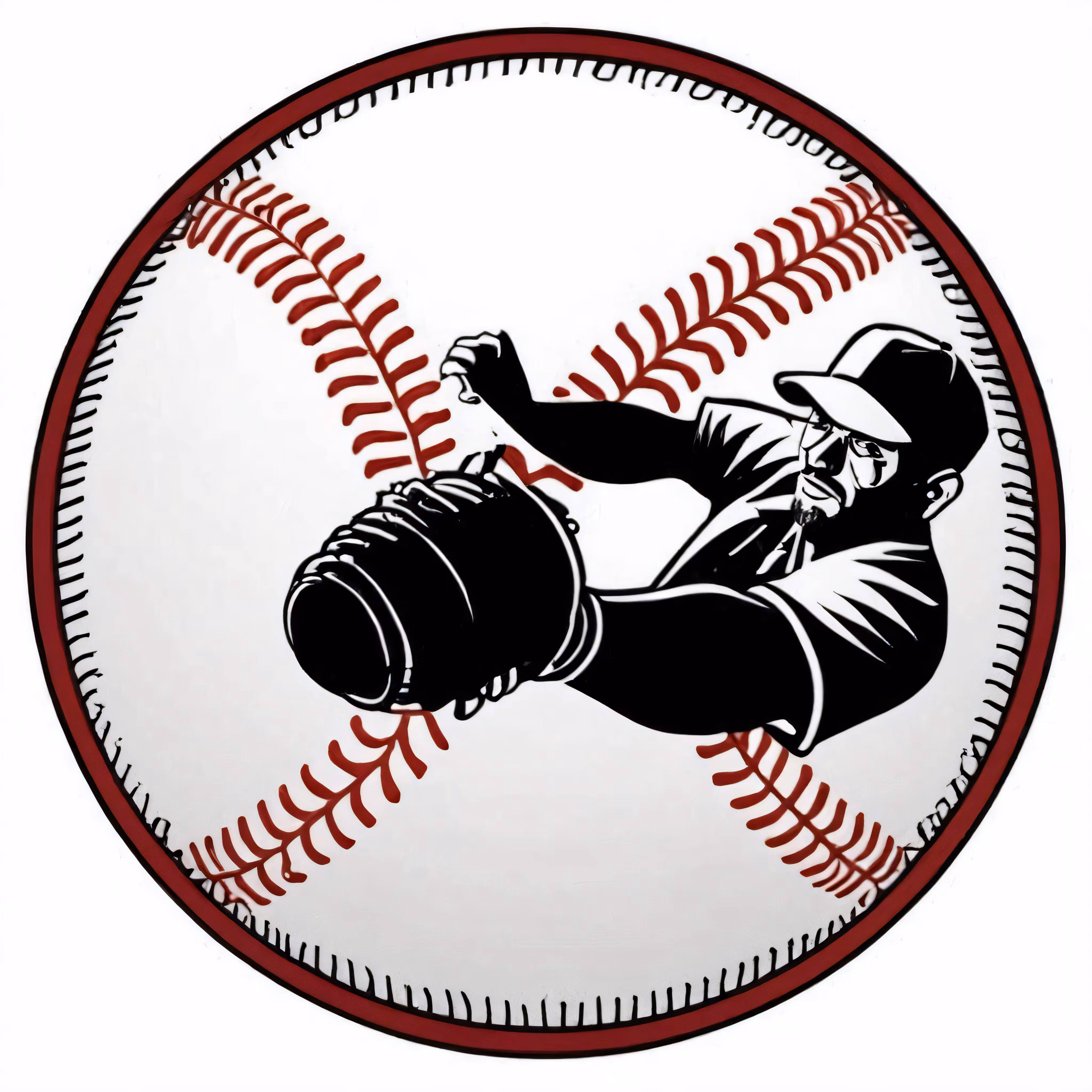 High resolution picture, free to use, a black and red baseball with a man throwing a baseball