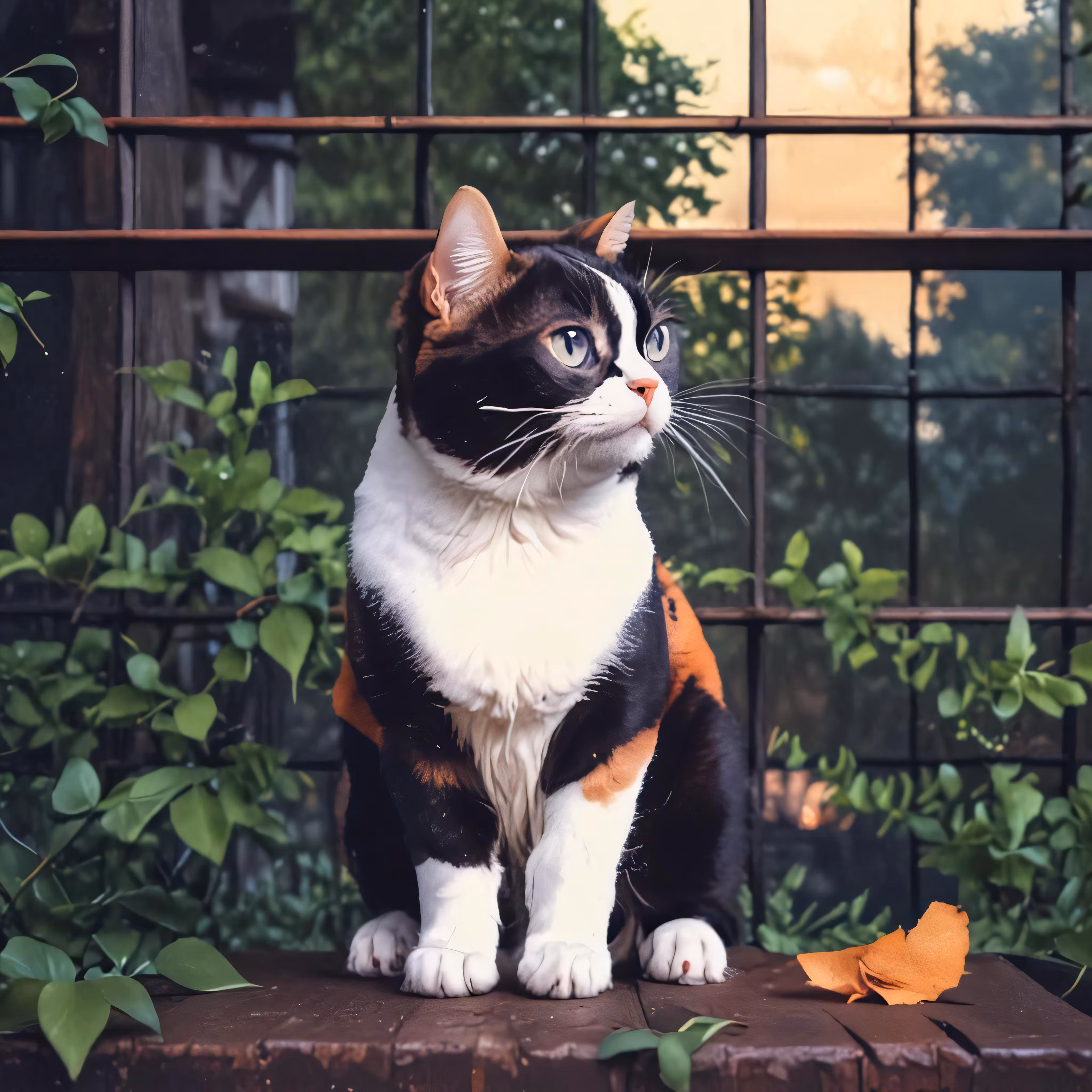 High resolution picture, free to use, a black and white cat standing next to a bush