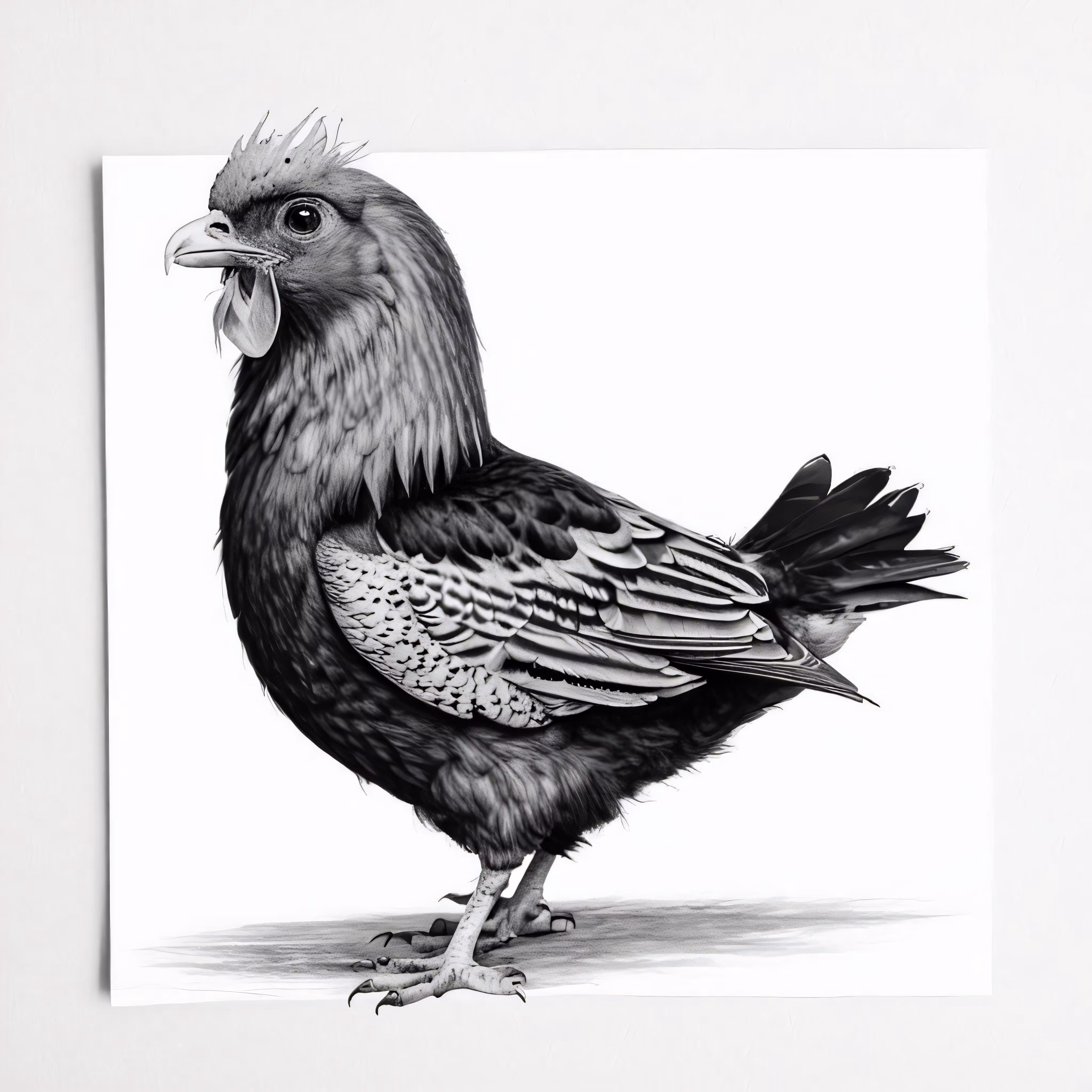 High resolution picture, free to use, a black and white chicken is standing on its legs