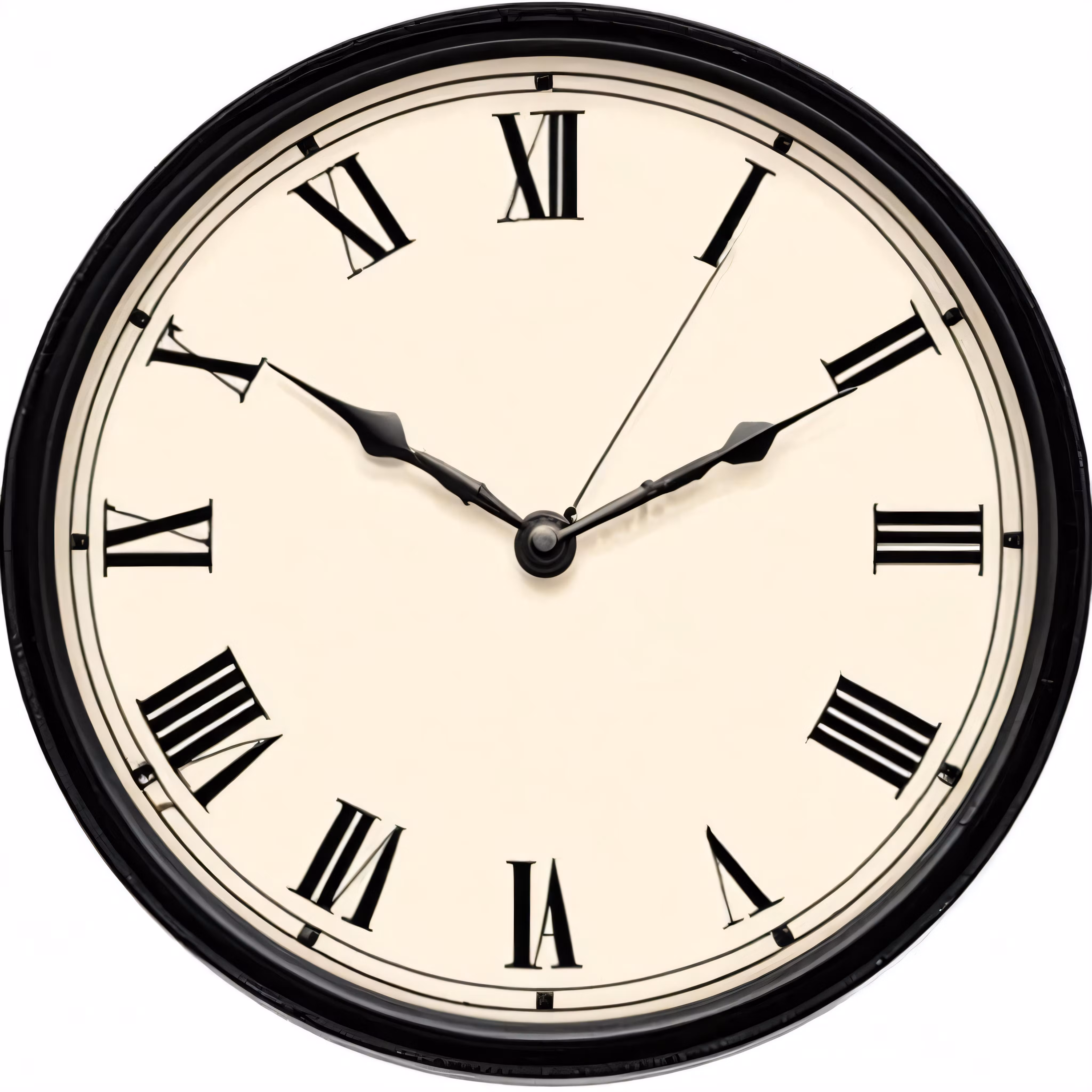 High resolution picture, free to use, a black and white clock on a white background