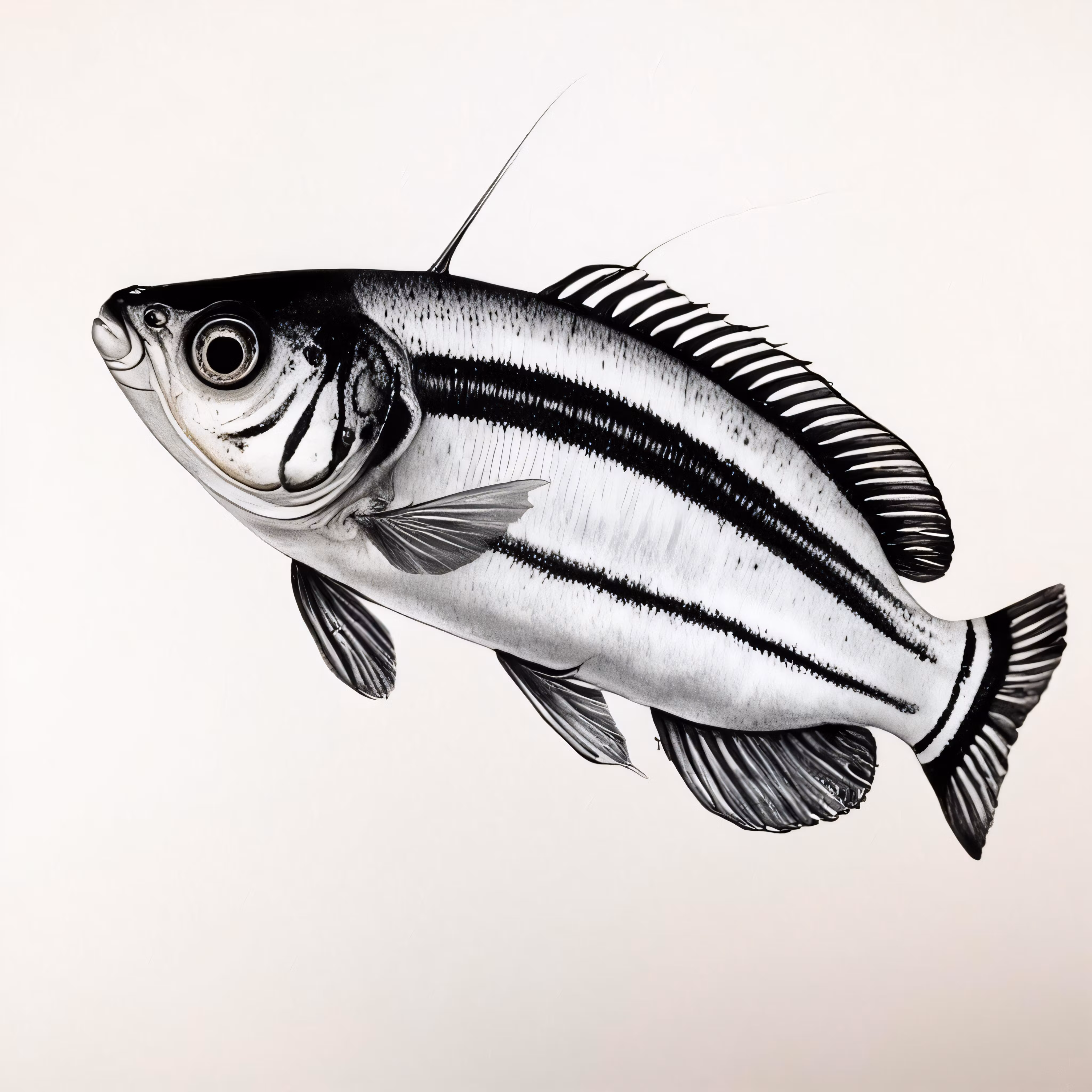 High resolution picture, free to use, a black and white drawing of a fish