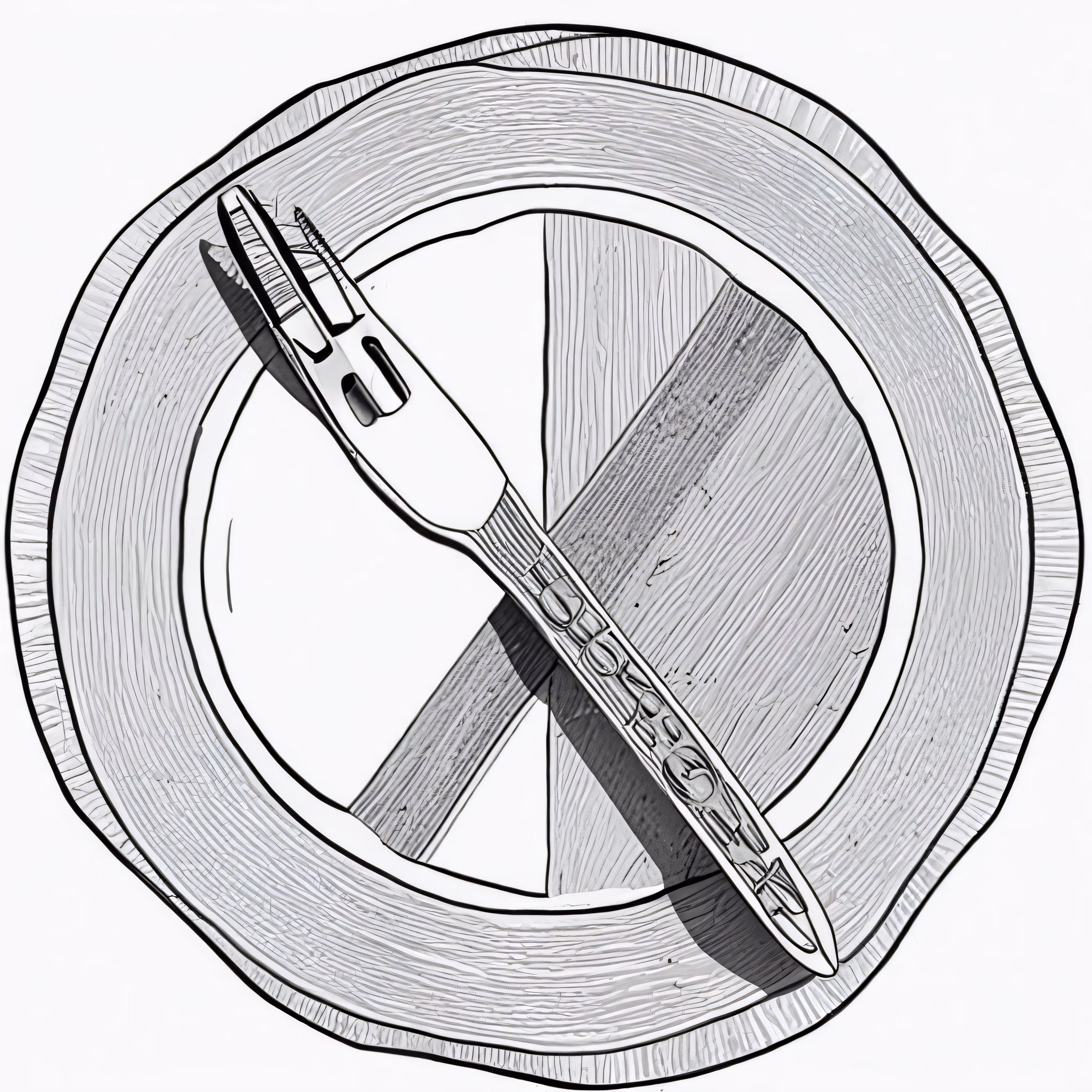 High resolution picture, free to use, a black and white drawing of a knife on top of a white plate