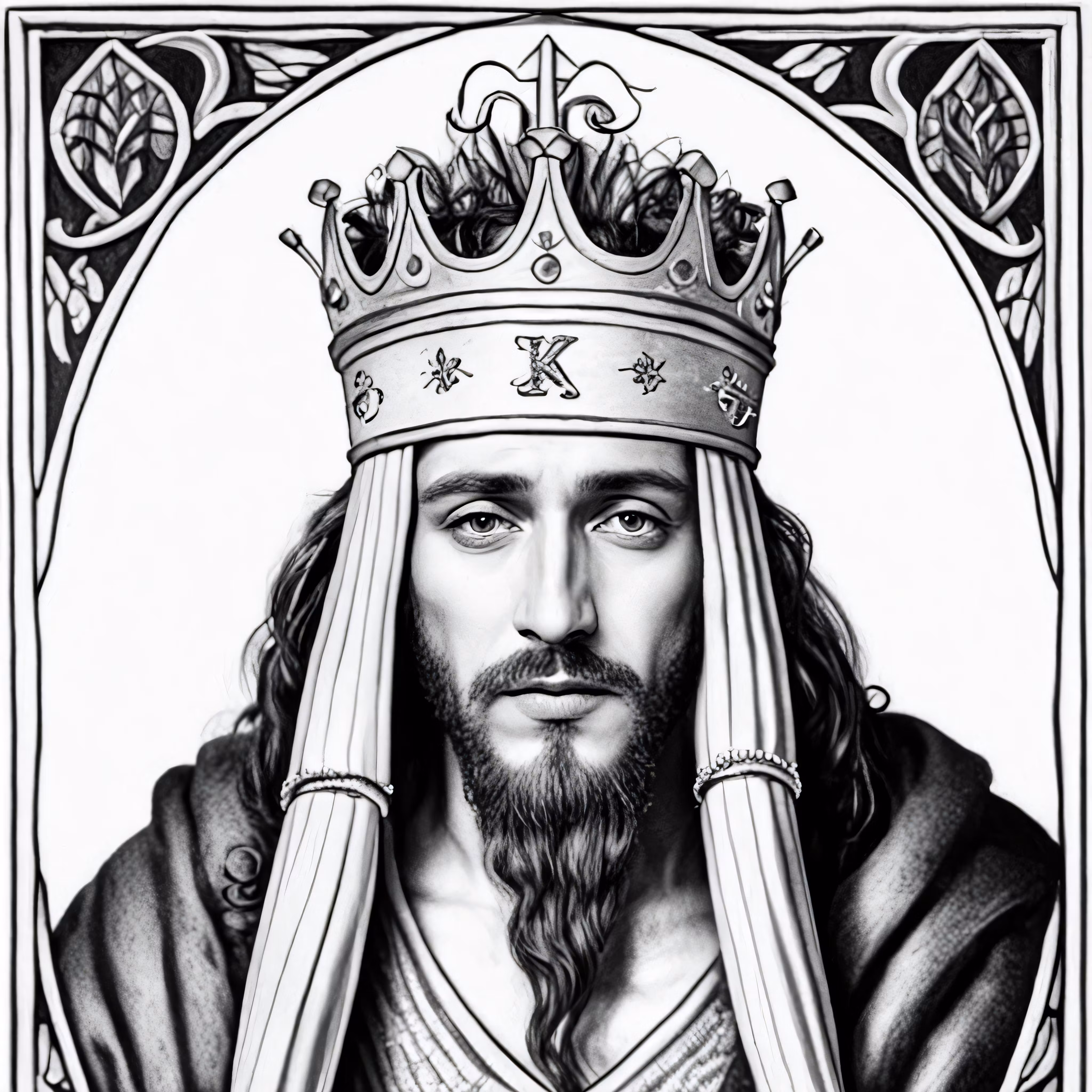 High resolution picture, free to use, a black and white drawing of a man with a crown on his head