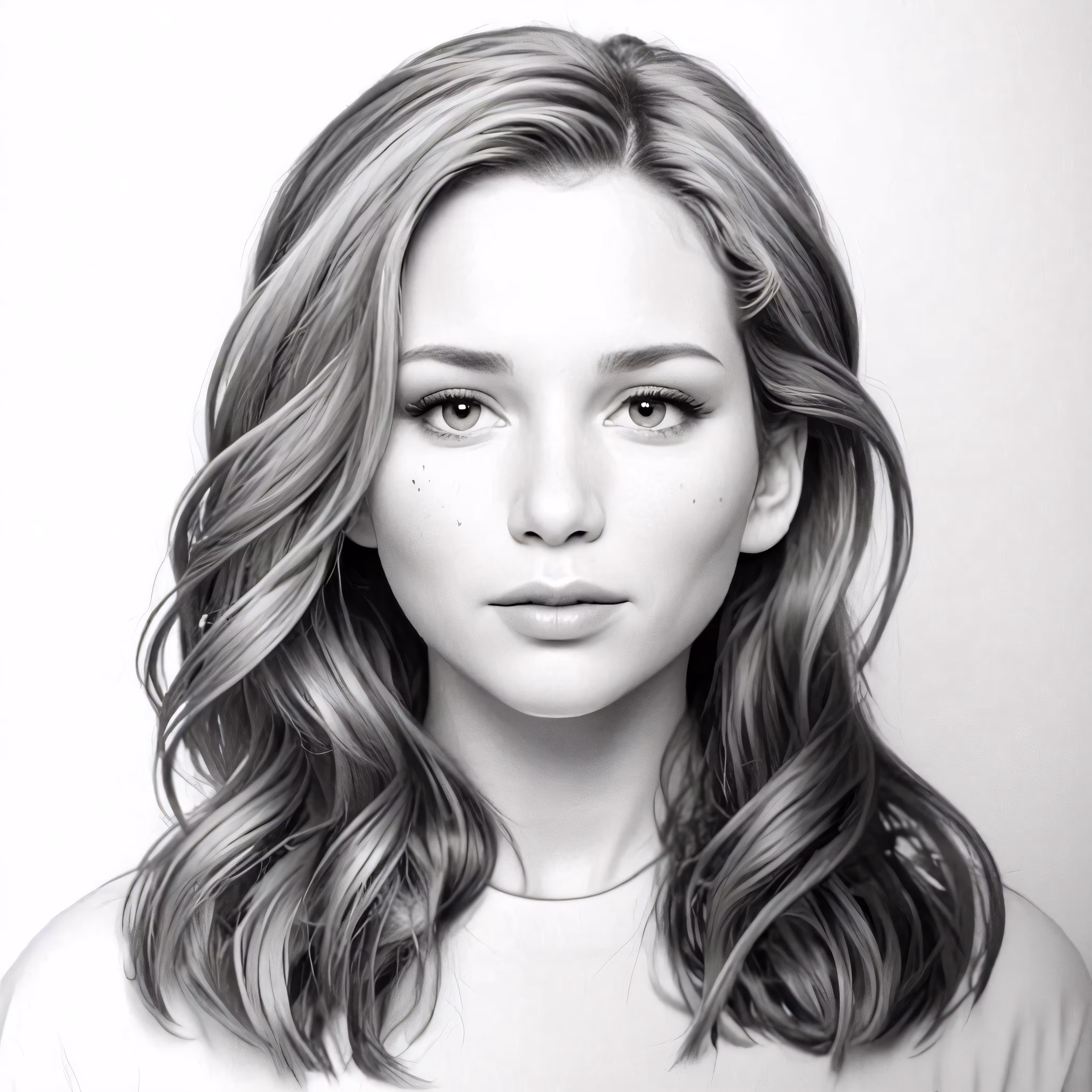 High resolution picture, free to use, a black and white drawing of a woman with long hair