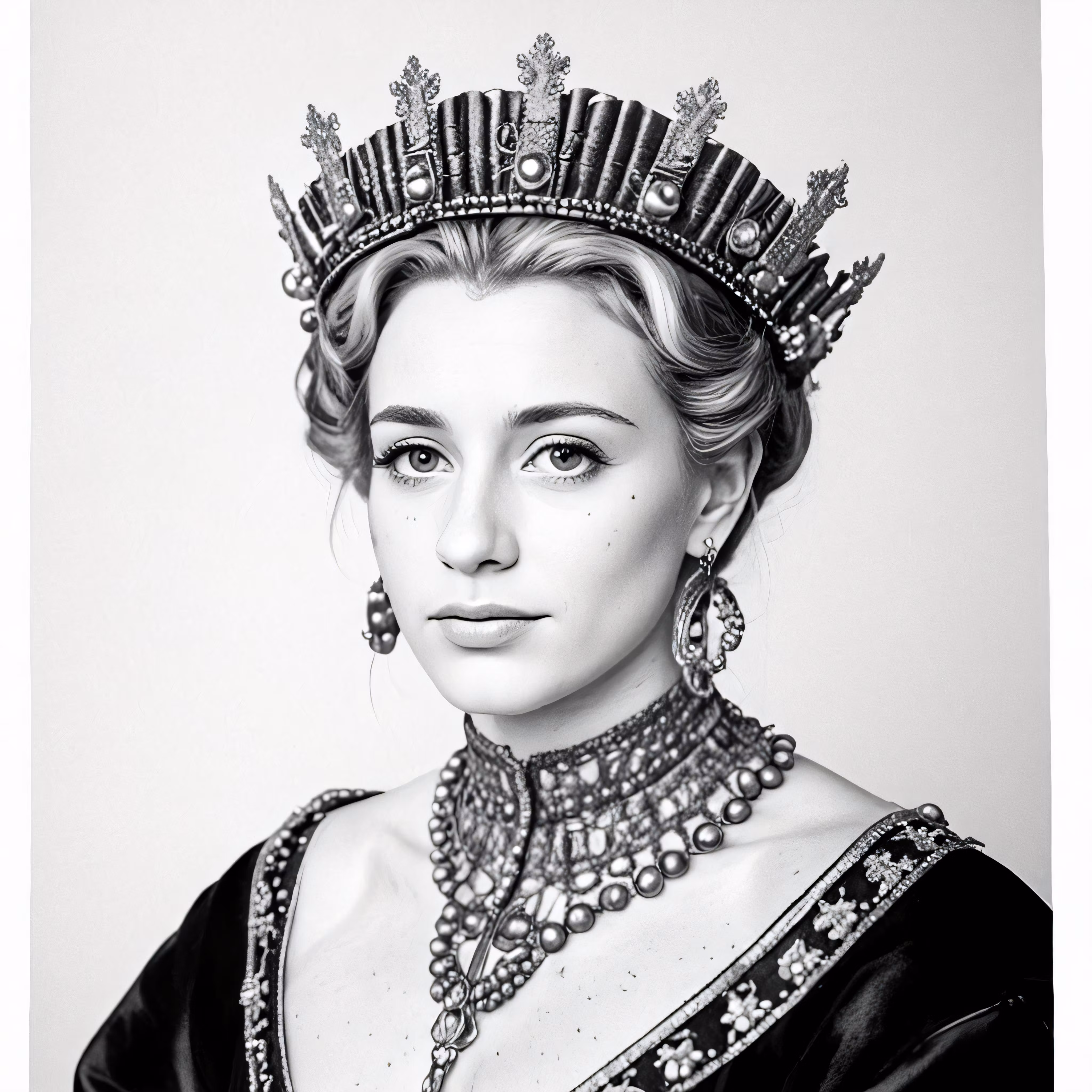 High resolution picture, free to use, a black and white drawing of a woman with tiara