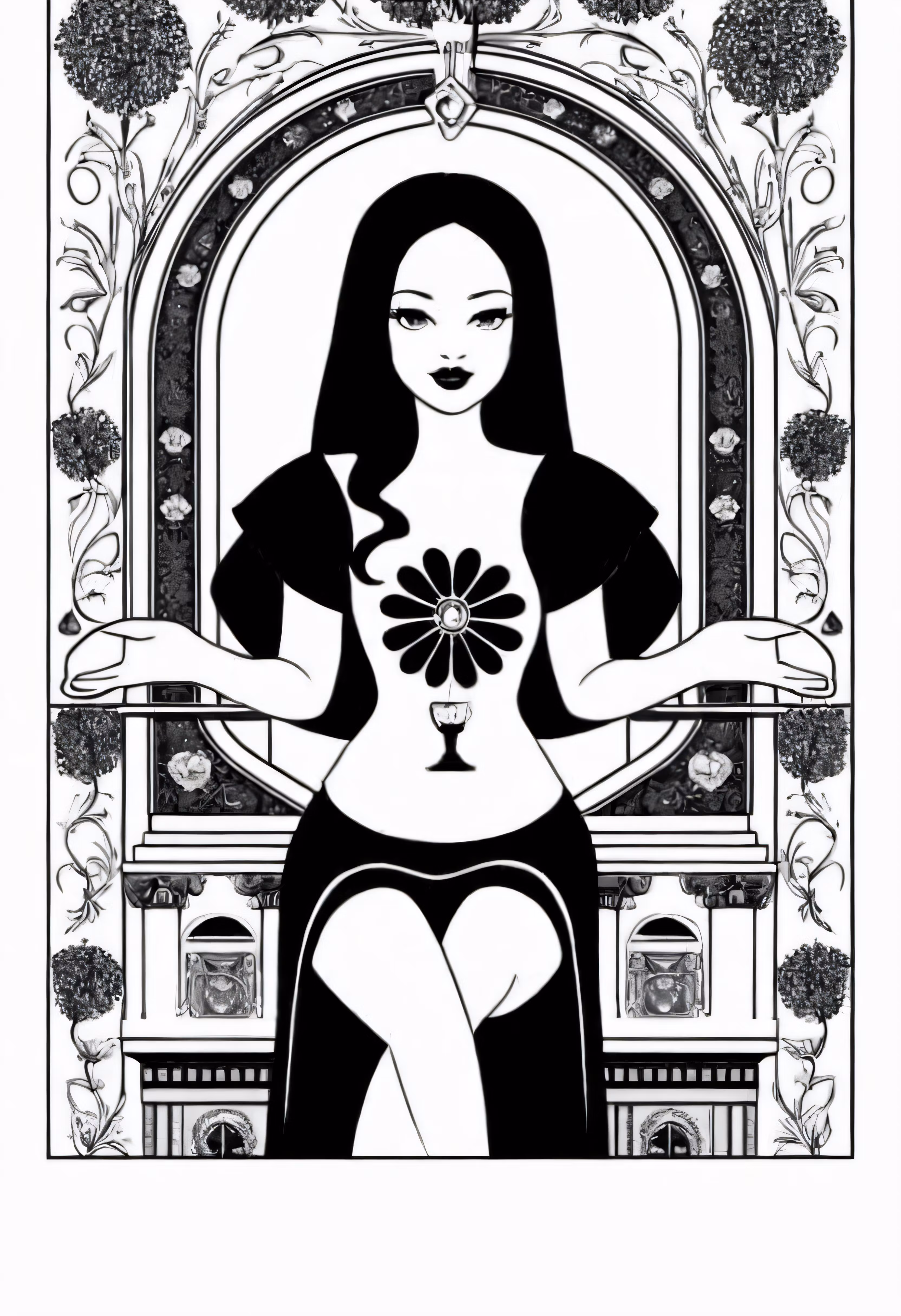 High resolution picture, free to use, a black and white illustration of a woman sitting on a chair