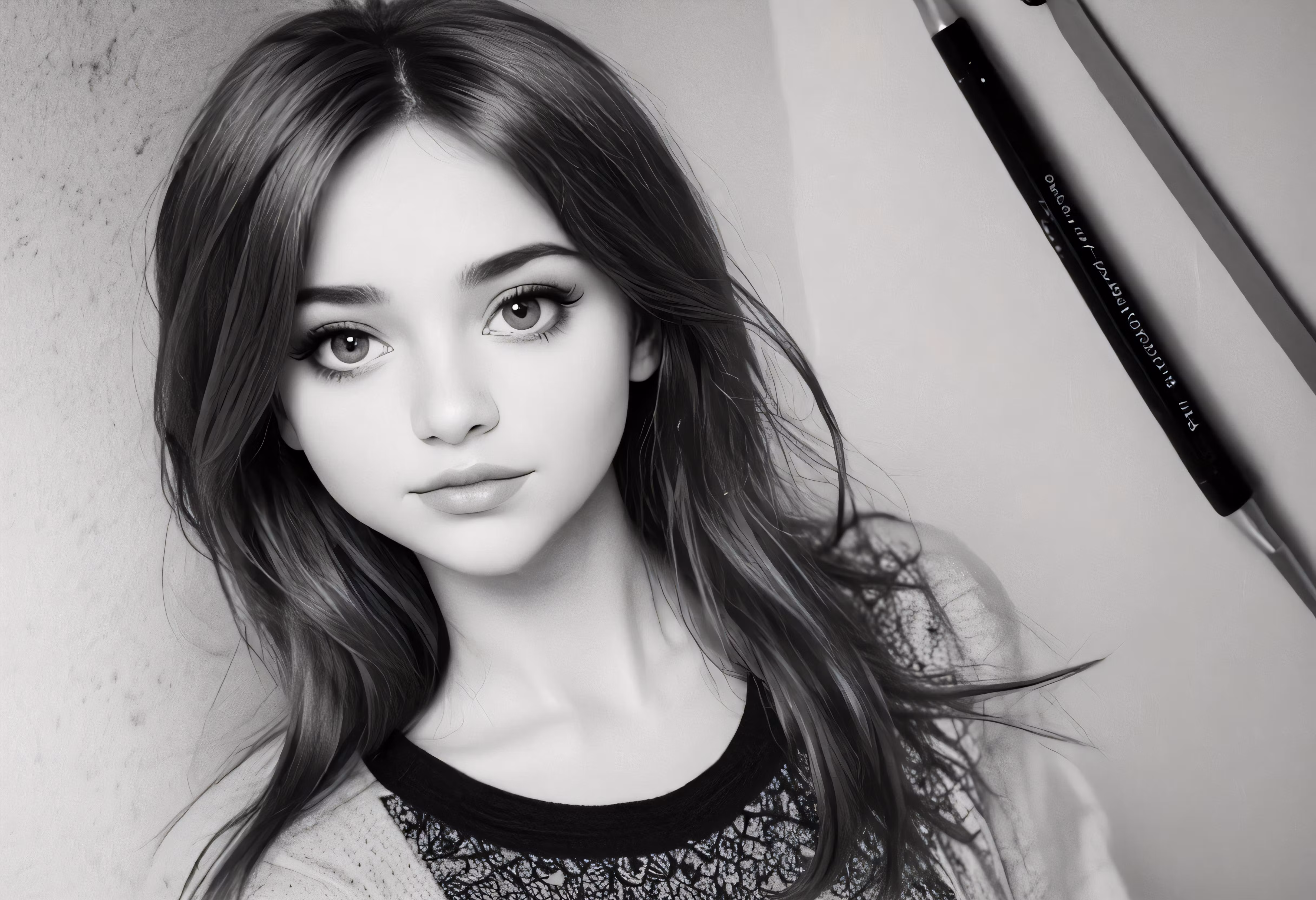 High resolution picture, free to use, a black and white image of a girl with makeup