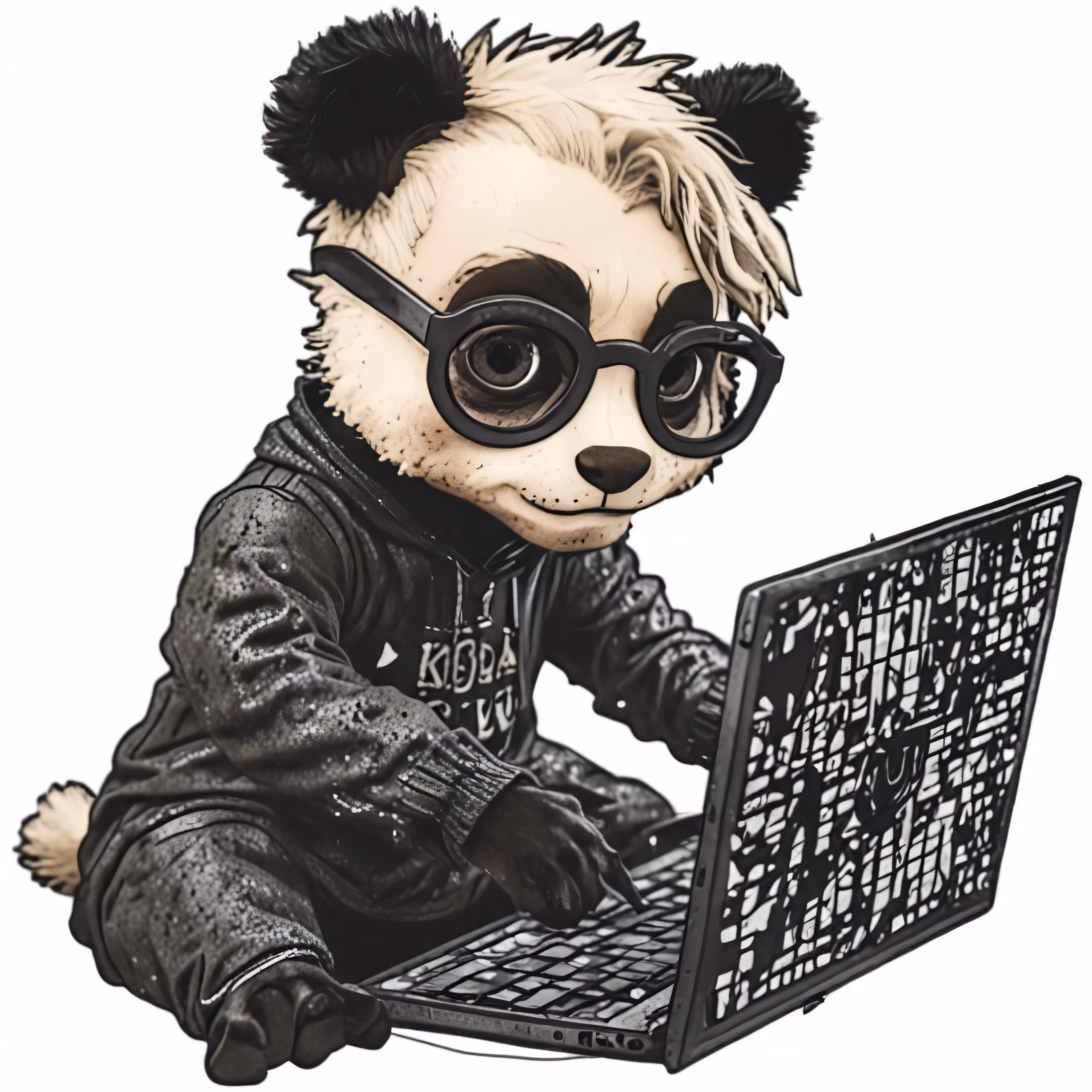 High resolution picture, free to use, a black and white panda sitting on top of a laptop computer