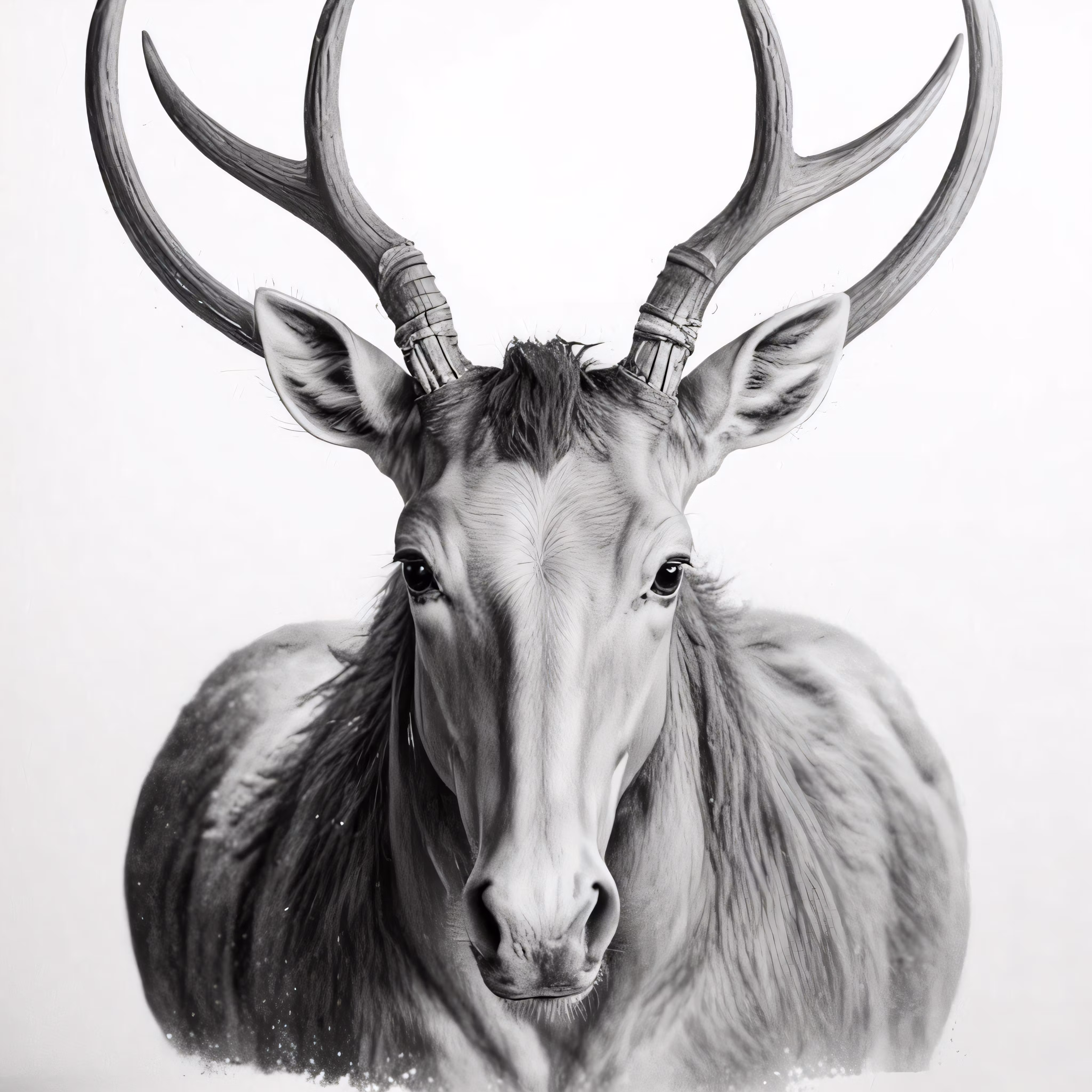 High resolution picture, free to use, a black and white photo of a deer with antlers