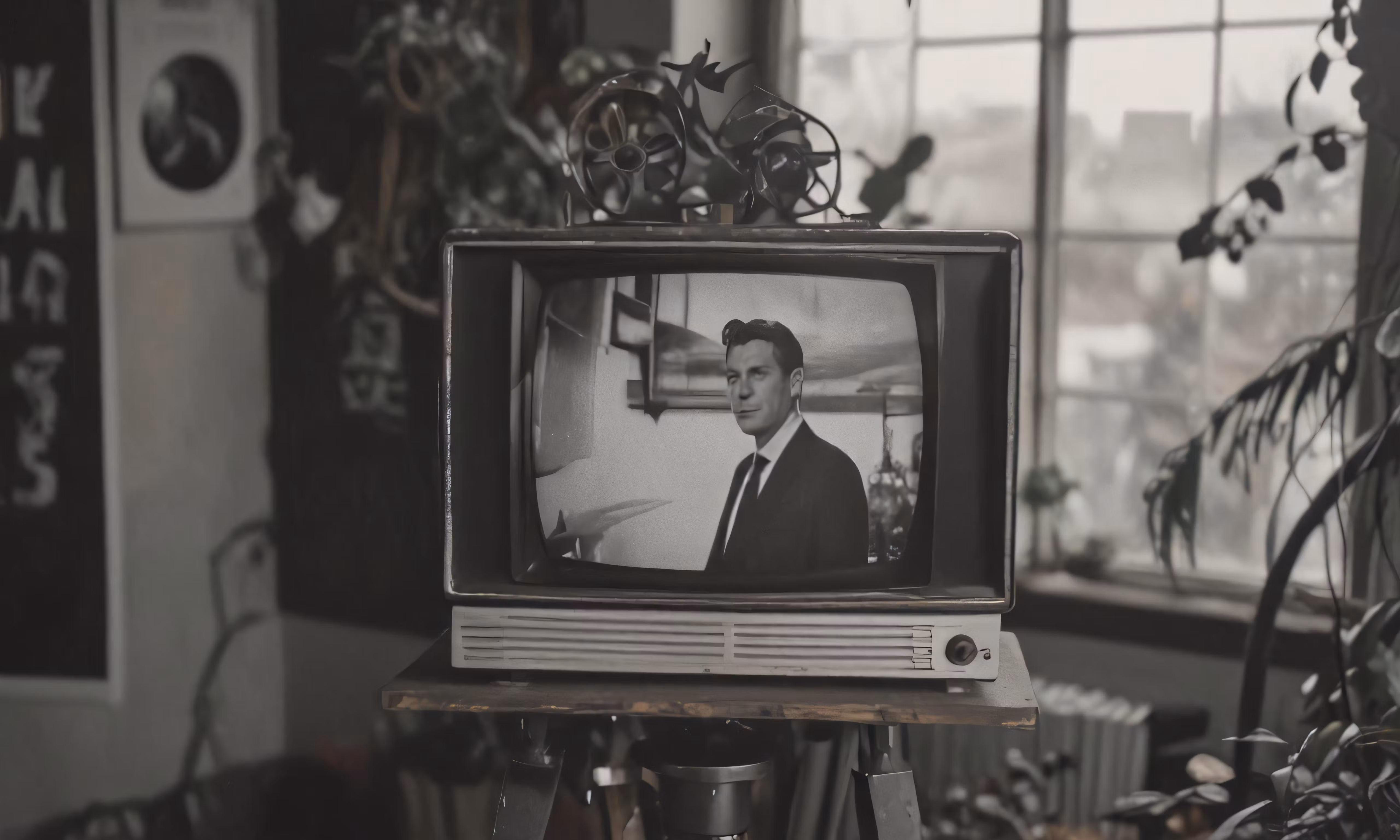 High resolution picture, free to use, a black and white photo of a person on a tv