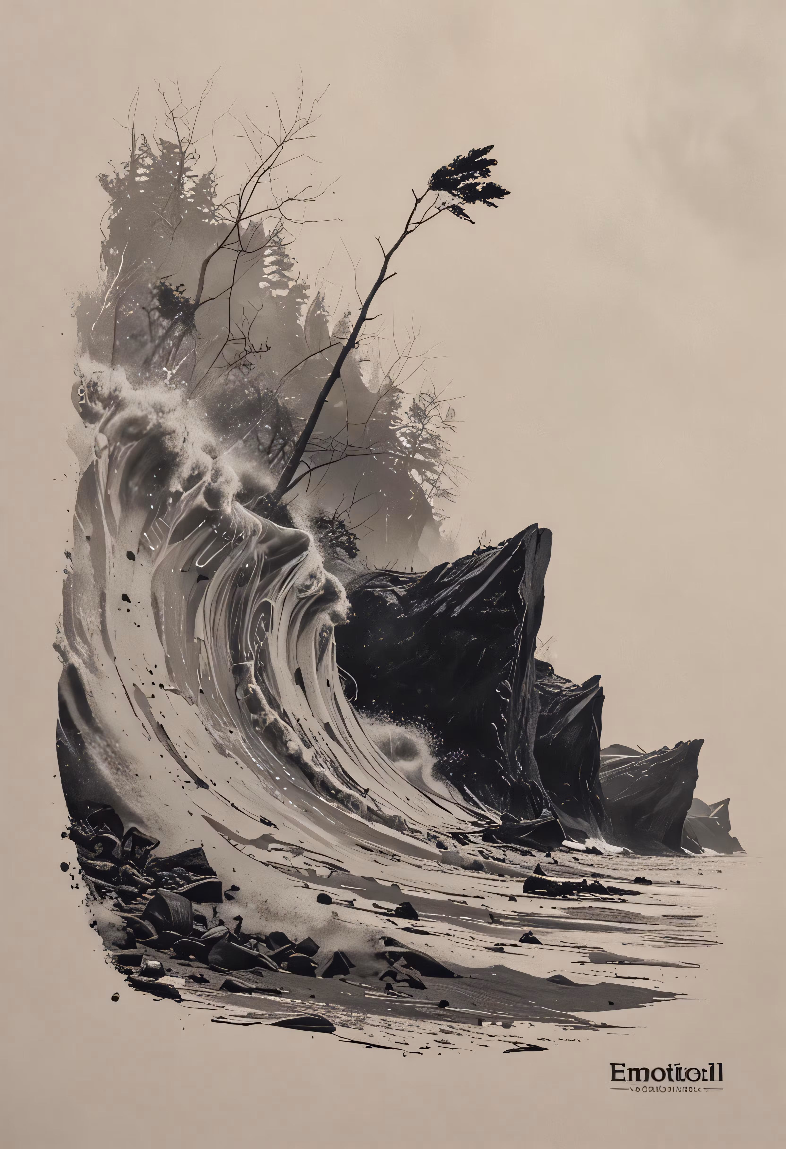 High resolution picture, free to use, a black and white photo of a wave coming toward a shore