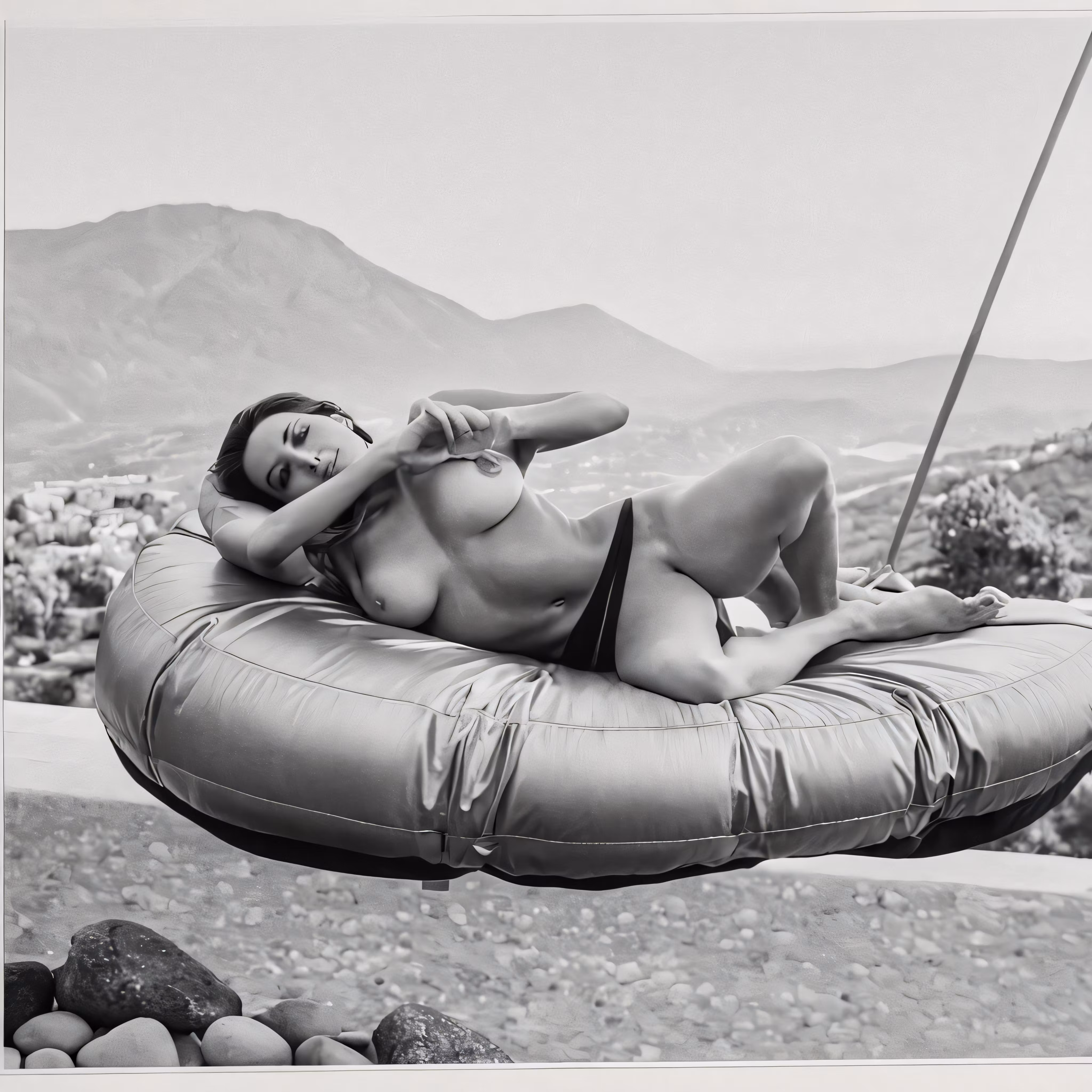 High resolution picture, free to use, a black and white photo of a woman in bikini on a beach
