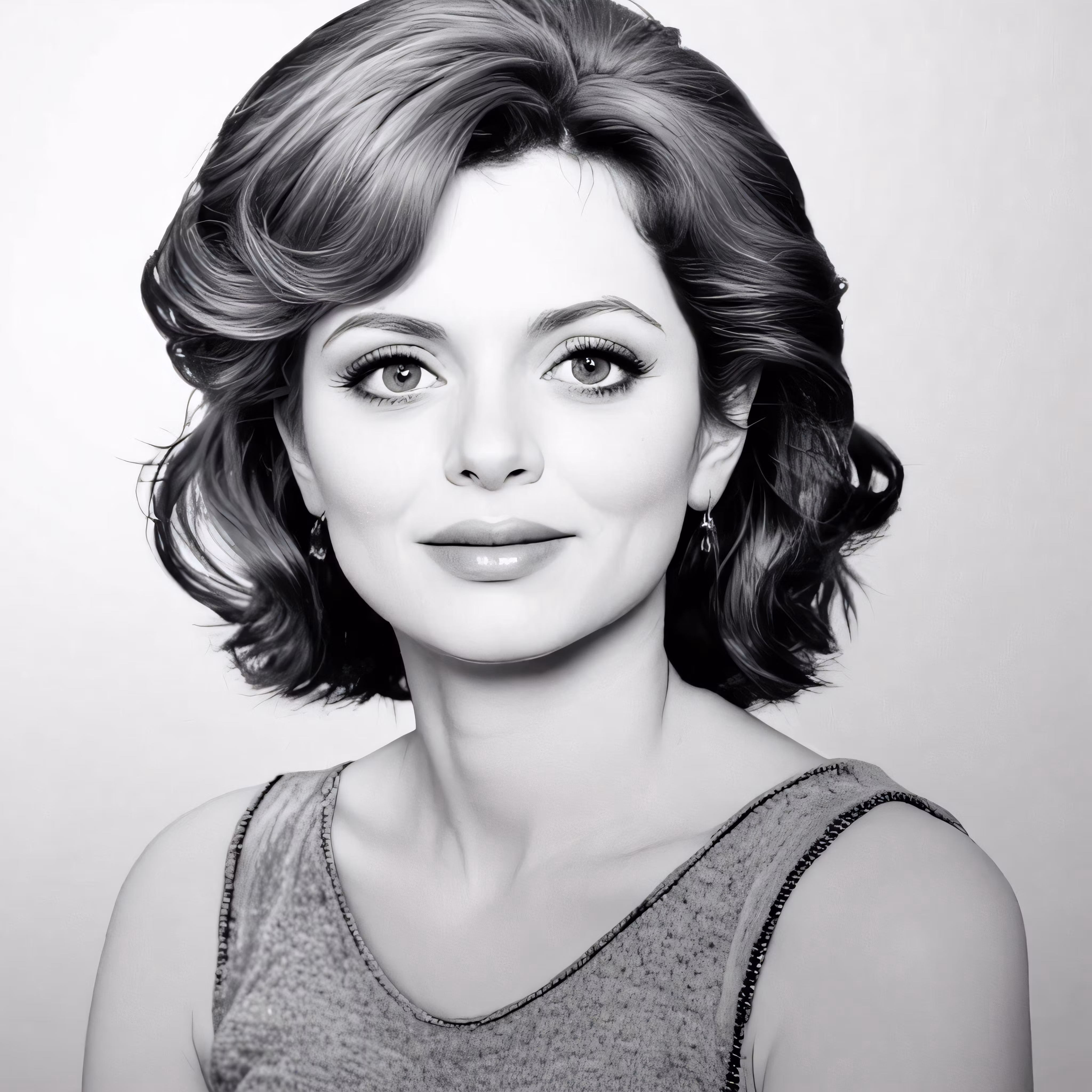 High resolution picture, free to use, a black and white photo of a woman smiling