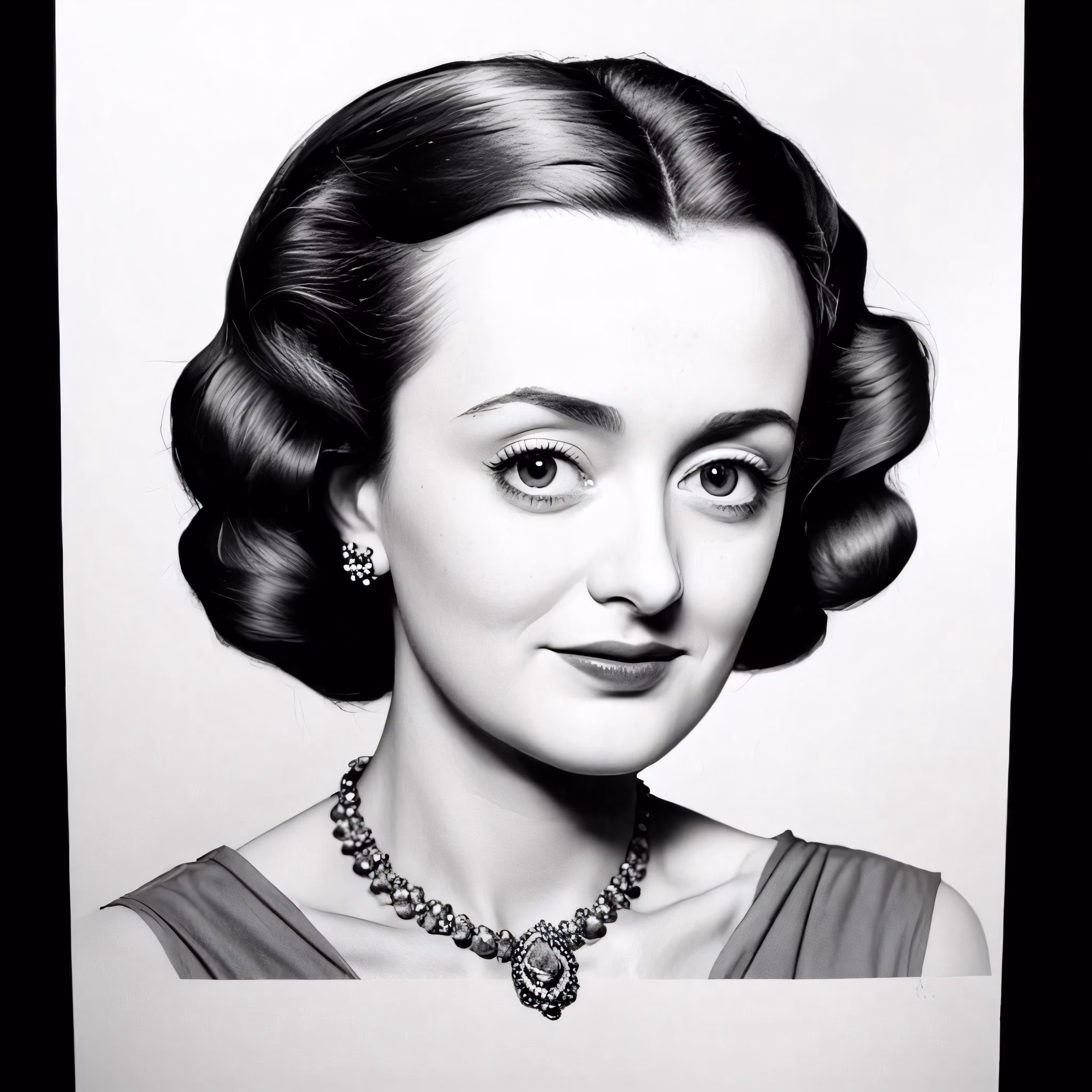High resolution picture, free to use, a black and white photo of a woman wearing a necklace