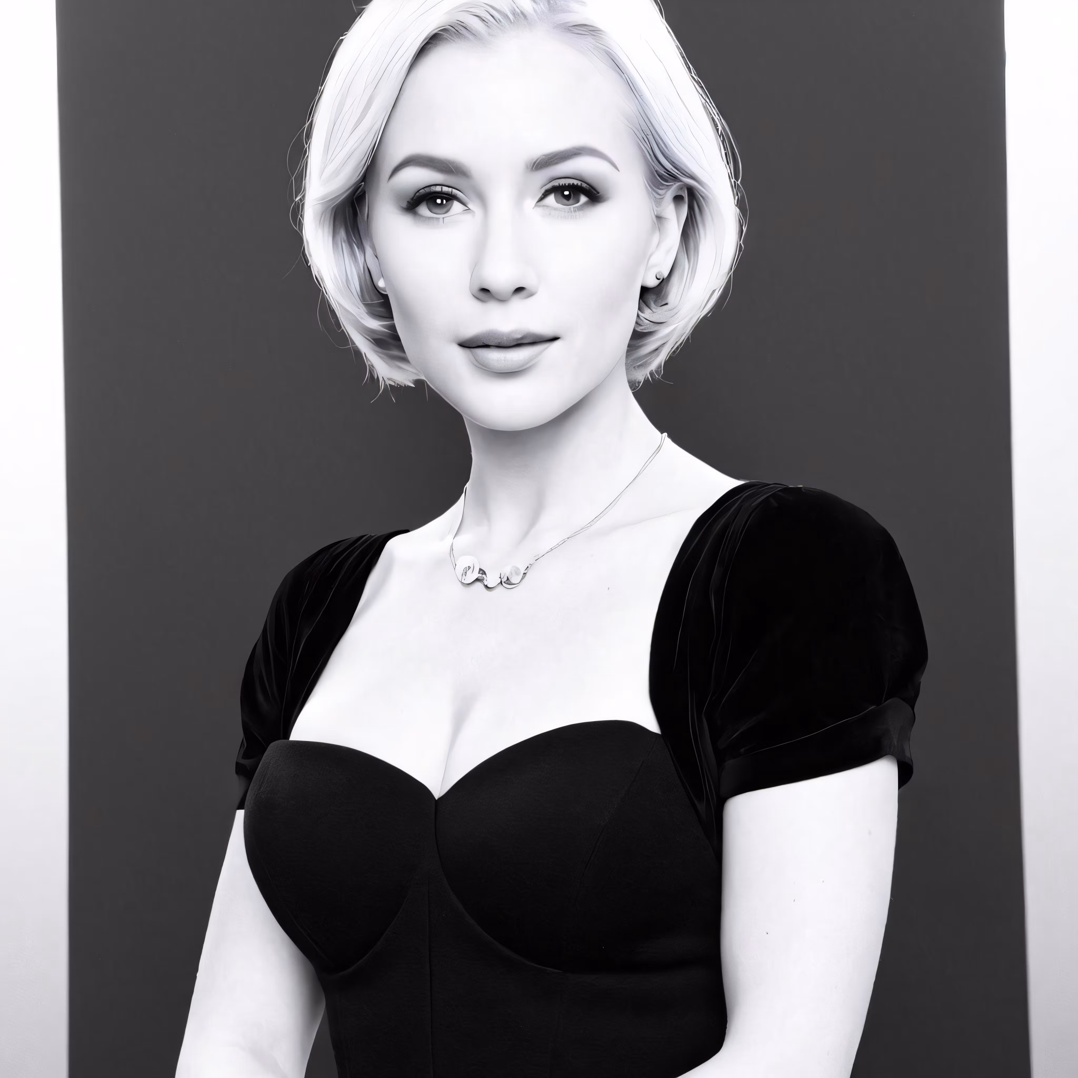 High resolution picture, free to use, a black and white photo of a woman with blonde hair