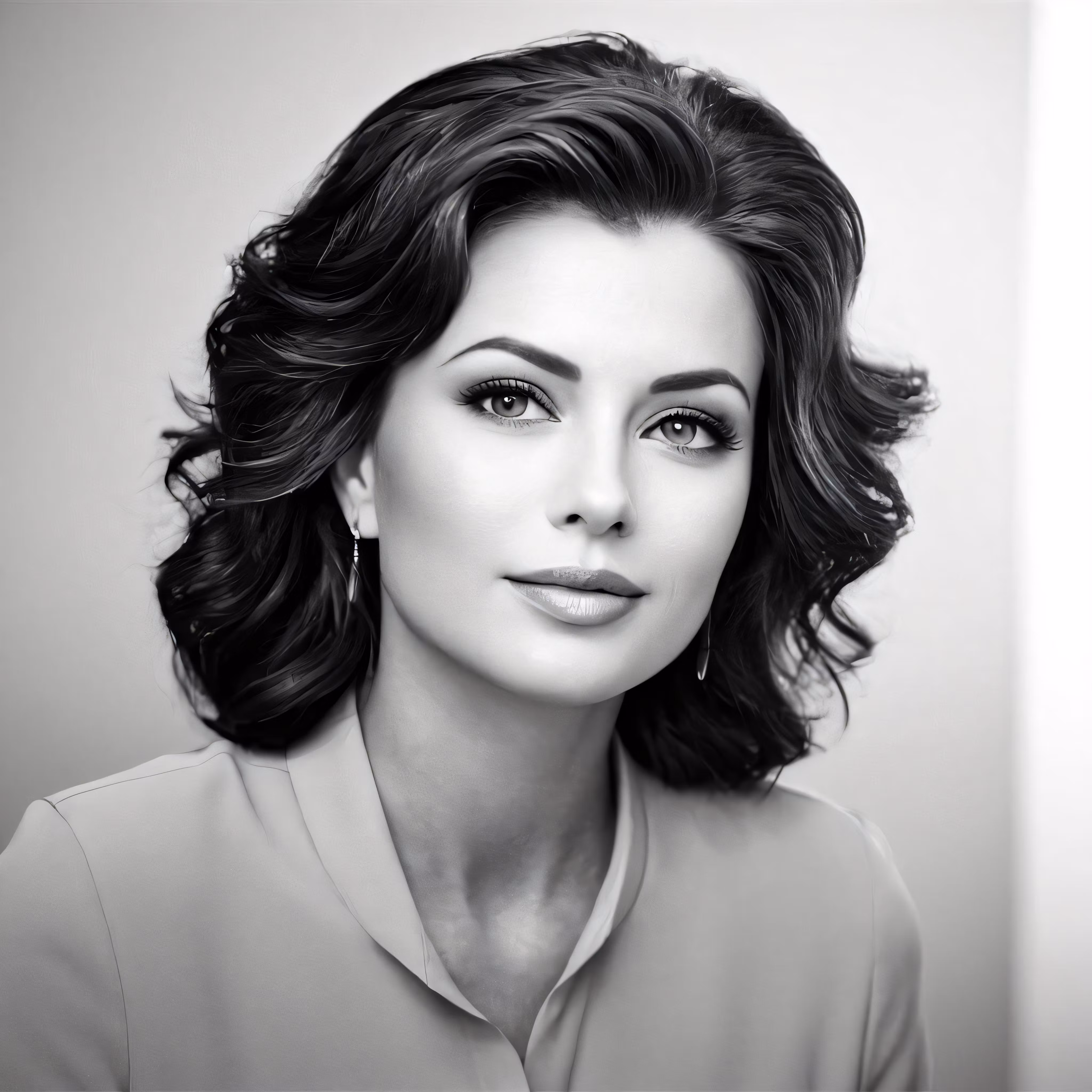 High resolution picture, free to use, a black and white photo of a woman with short hair