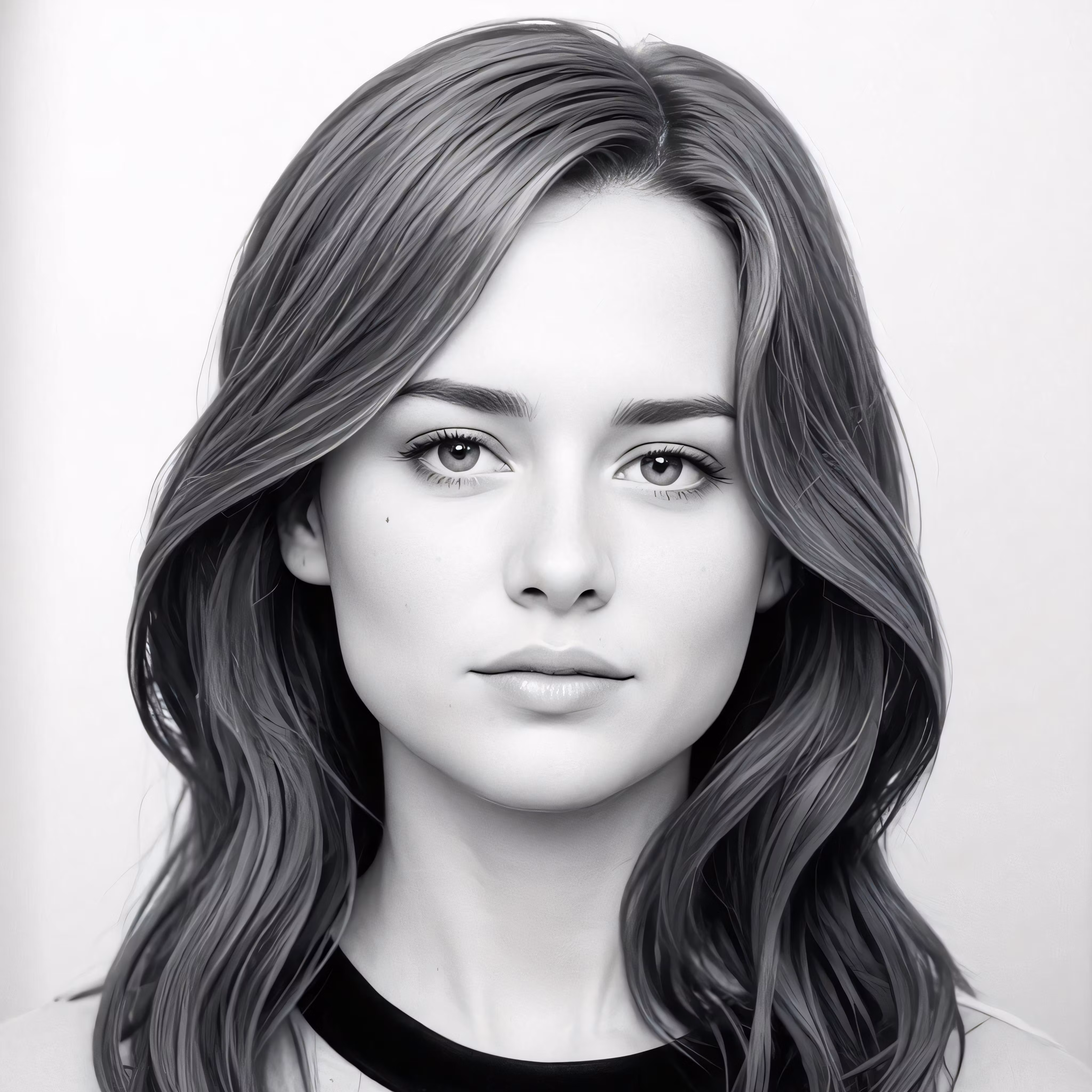 High resolution picture, free to use, a black and white photo of a woman with wavy hair