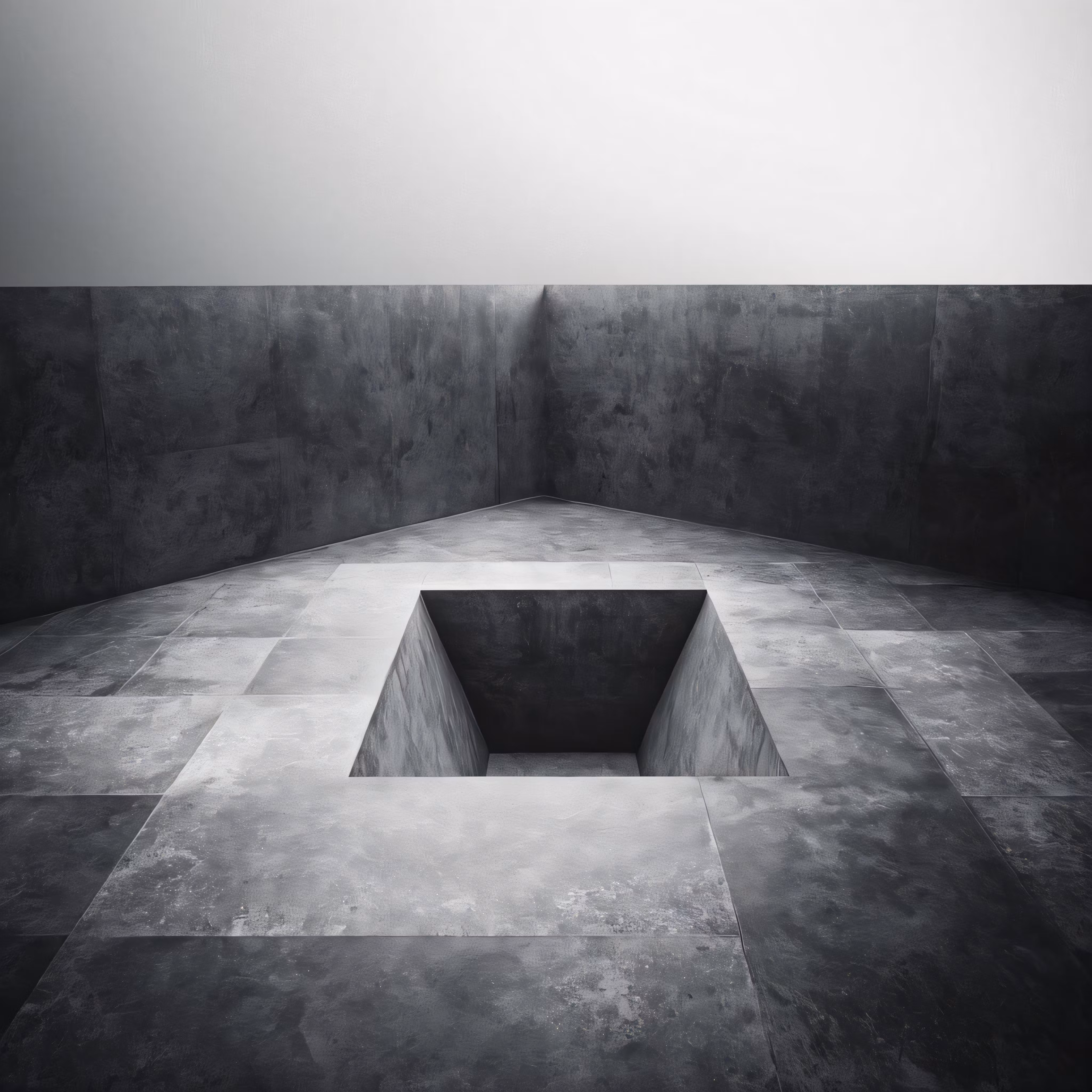 High resolution picture, free to use, a black and white photo of an abstract space with concrete walls