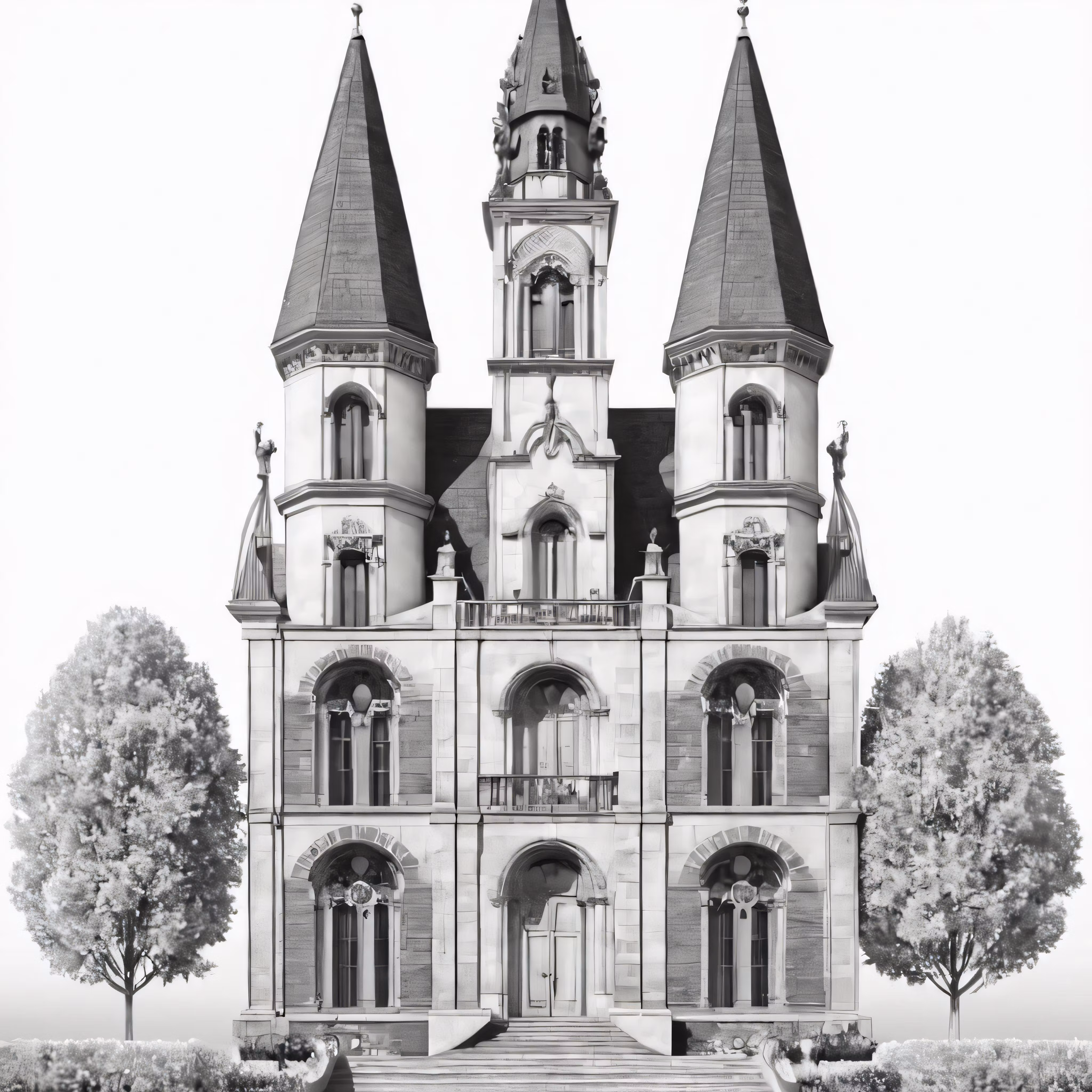 High resolution picture, free to use, a black and white photo of an old castle