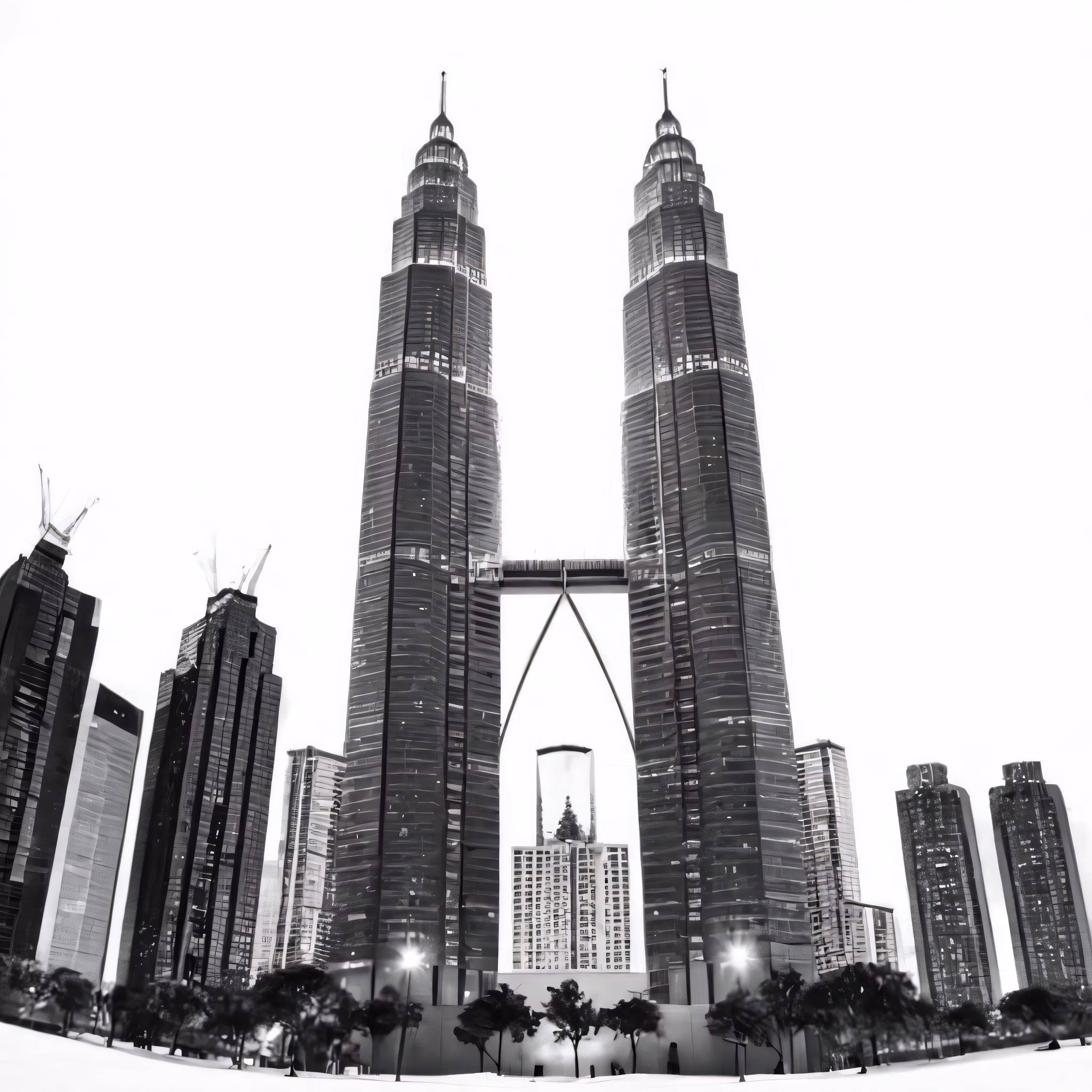 High resolution picture, free to use, a black and white photo of some very tall buildings