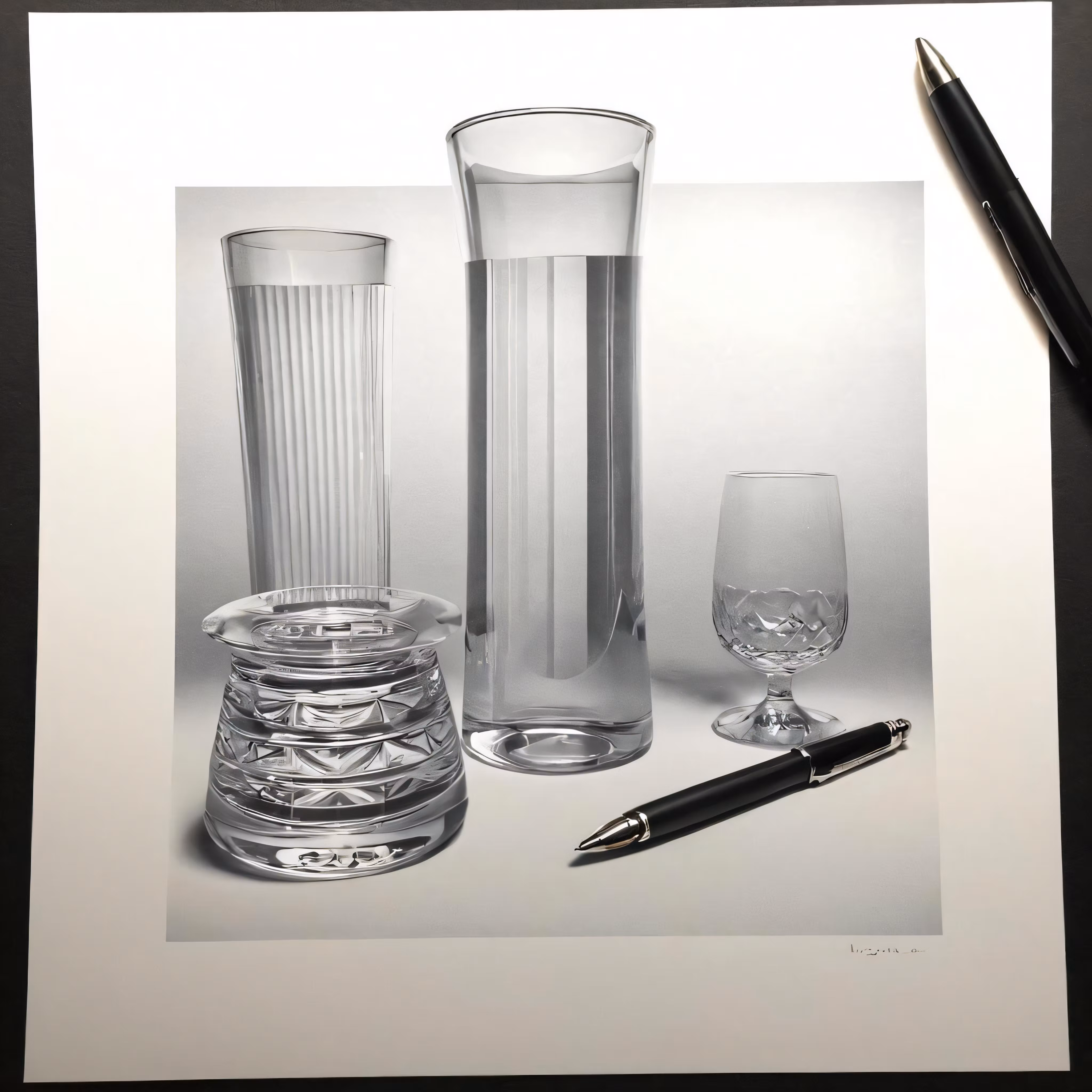 High resolution picture, free to use, a black and white photo with different glassware on top