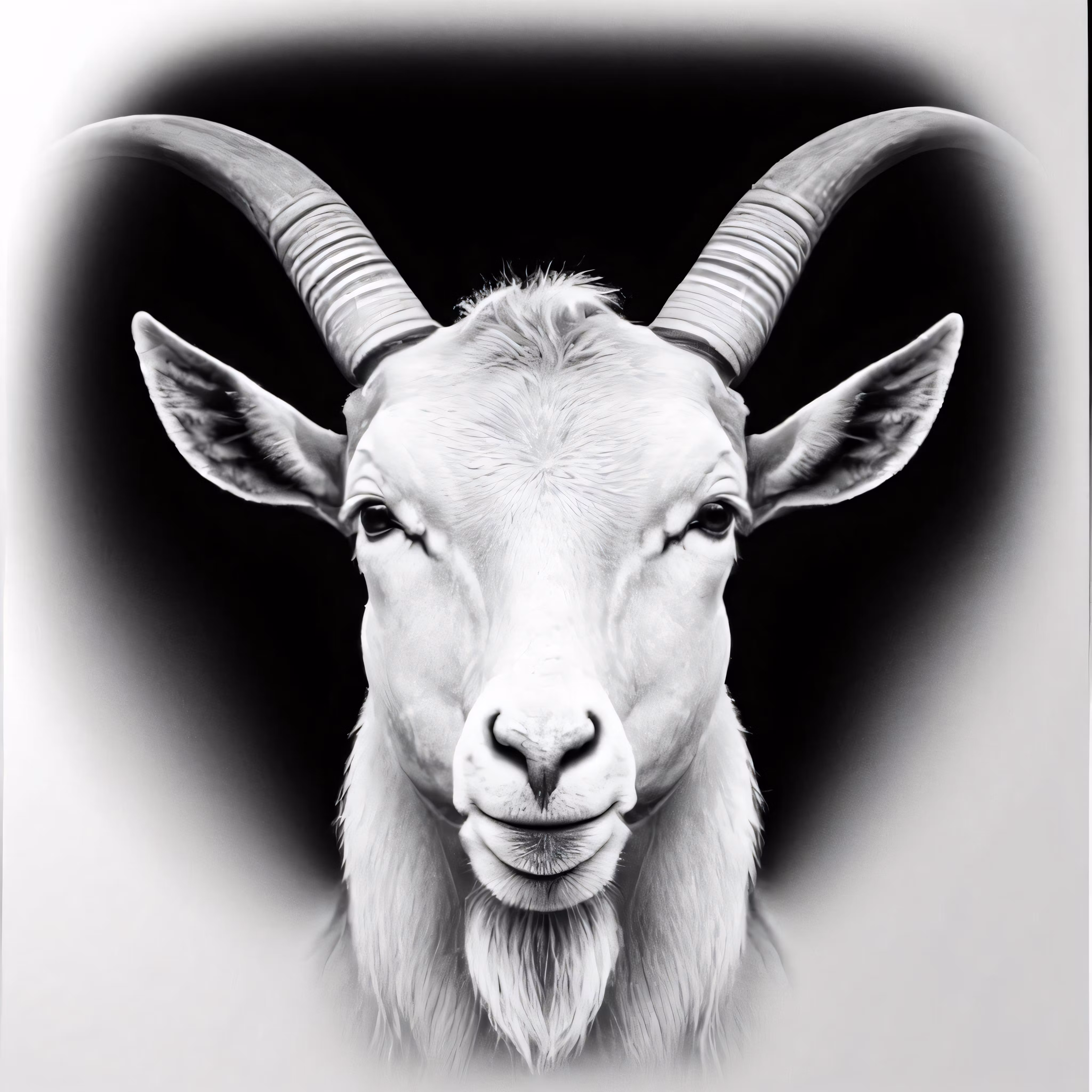 High resolution picture, free to use, a black and white photograph of a goat
