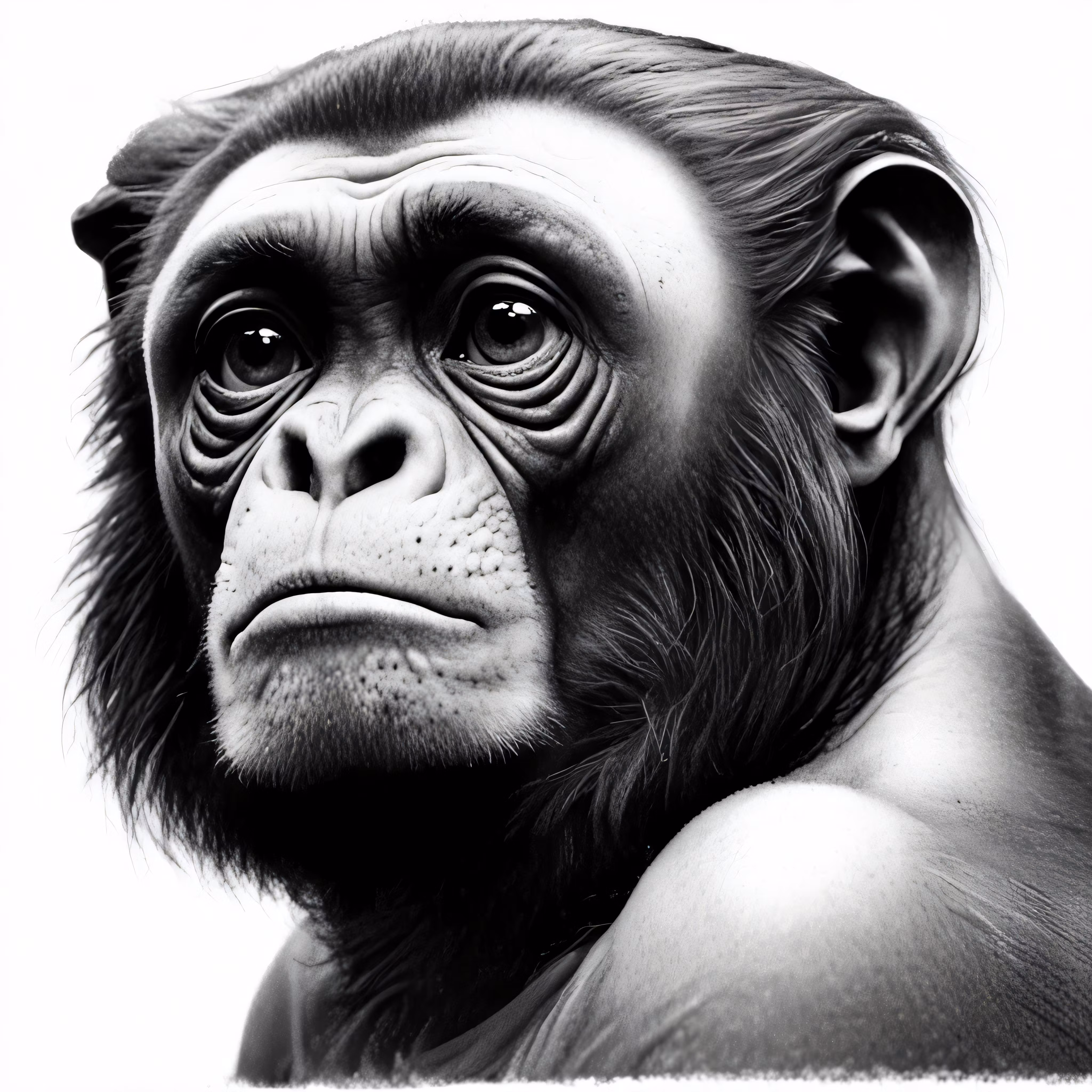 High resolution picture, free to use, a black and white photograph of a monkey