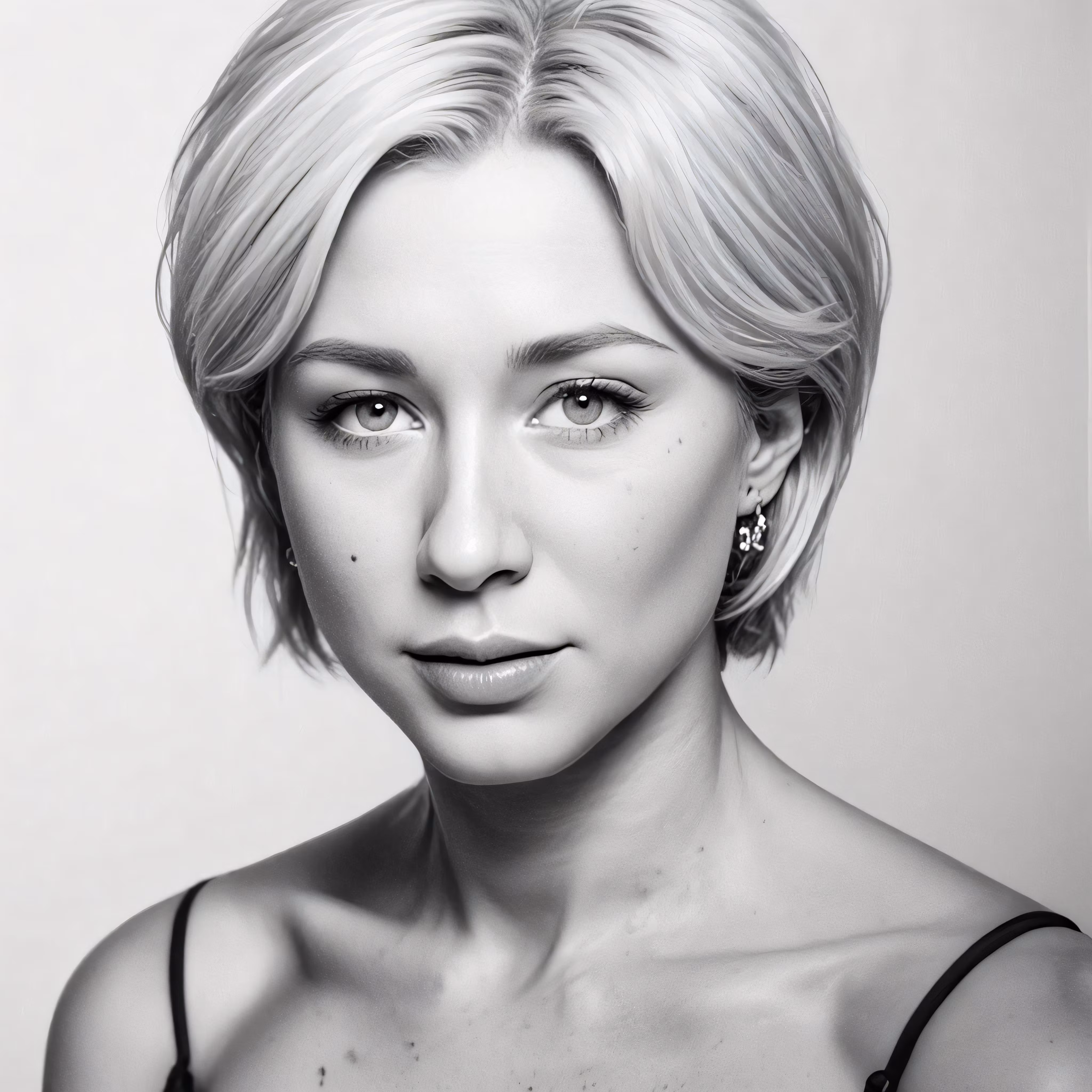 High resolution picture, free to use, a black and white photograph of a woman with a short hair