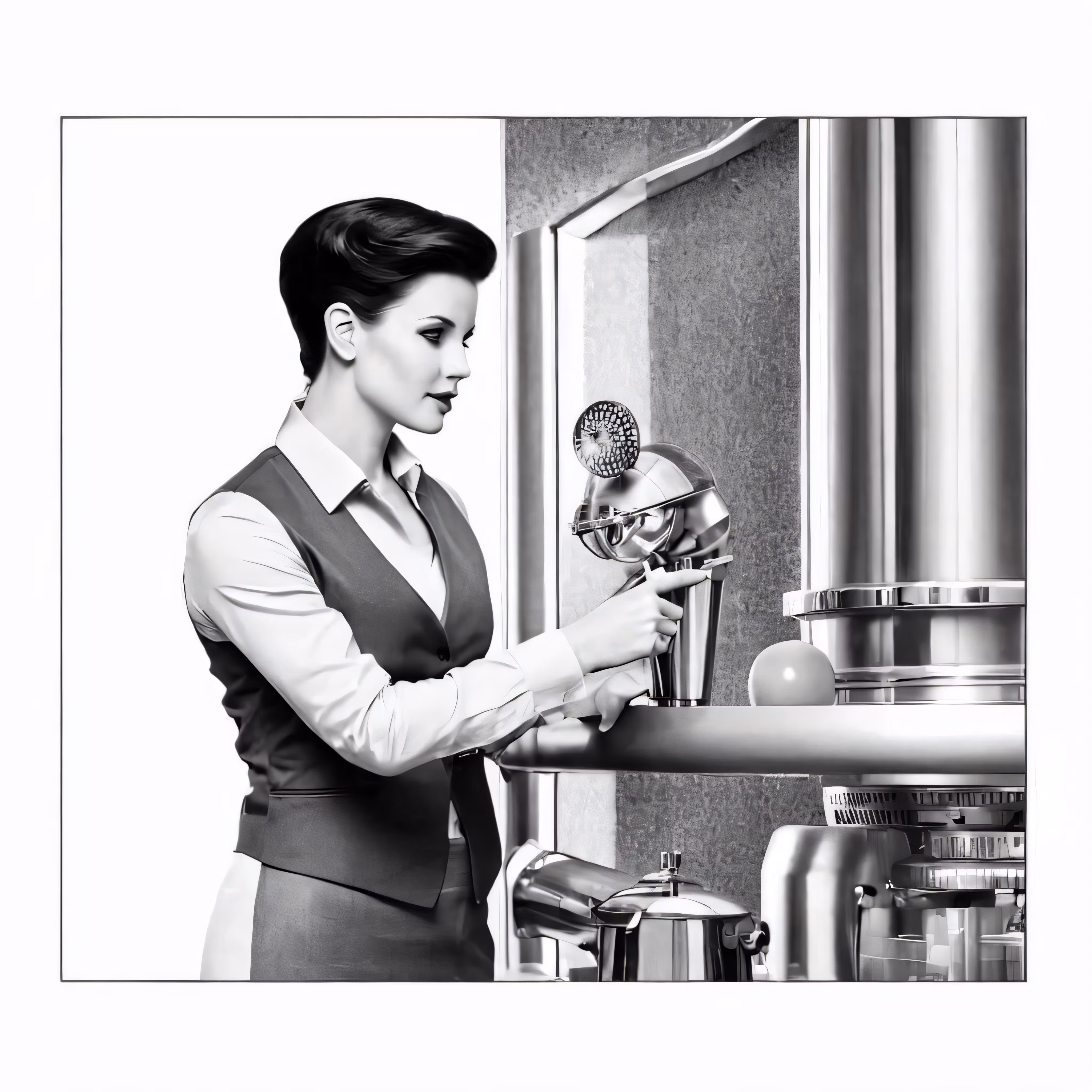 High resolution picture, free to use, a black and white photograph of a woman with her hand on the handle of a faucet