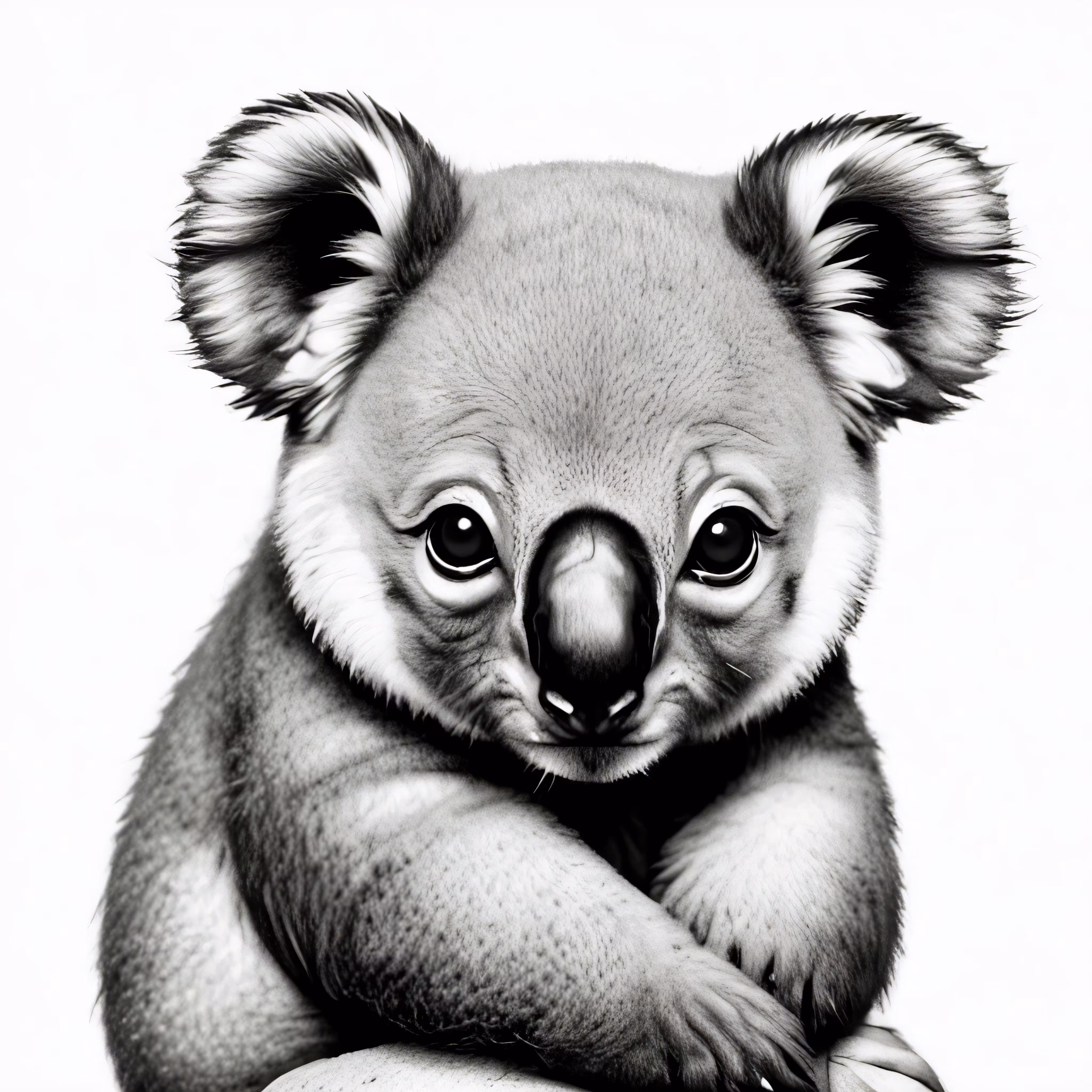High resolution picture, free to use, a black and white picture of a koala bear sitting on the ground
