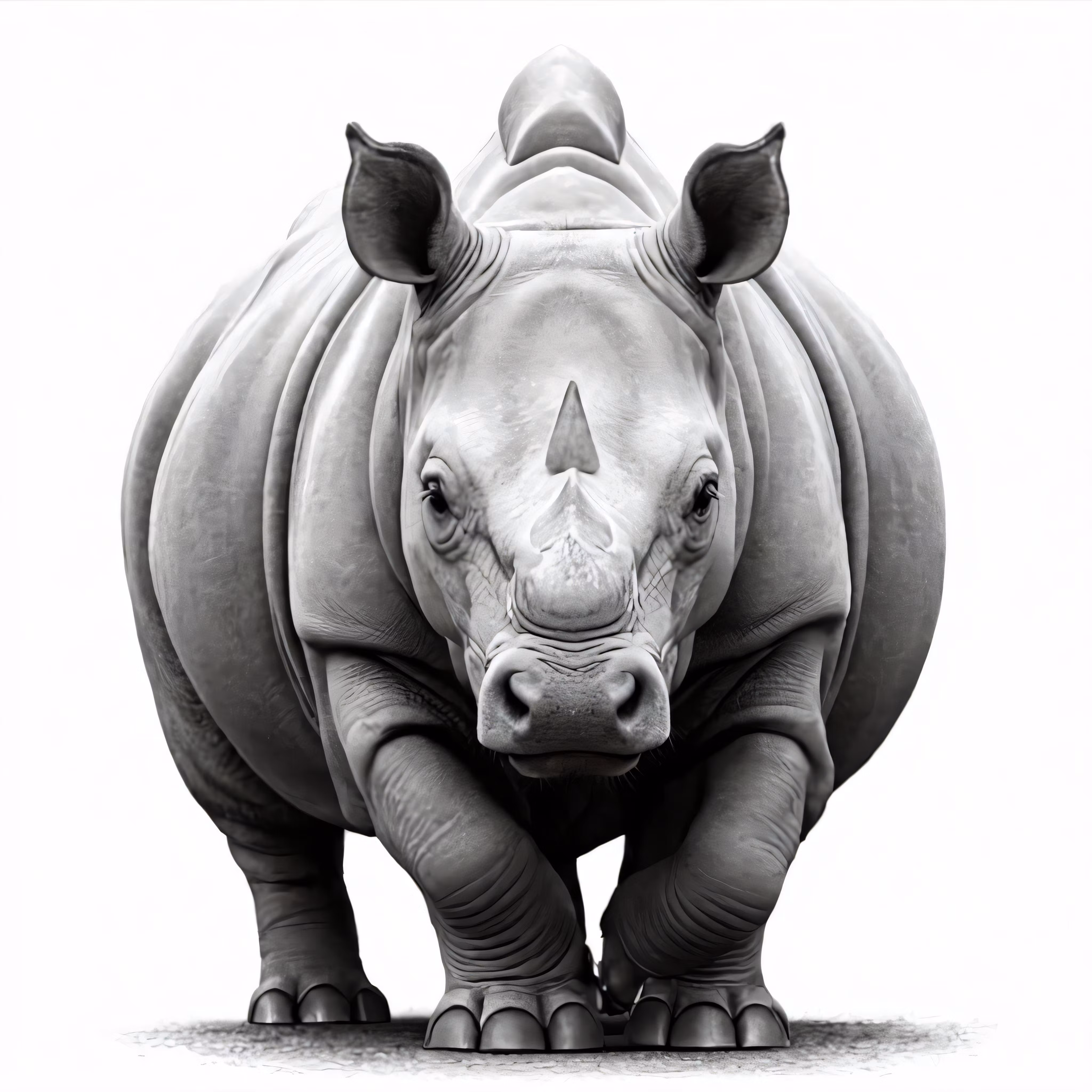 High resolution picture, free to use, a black and white rhino is shown on a plain