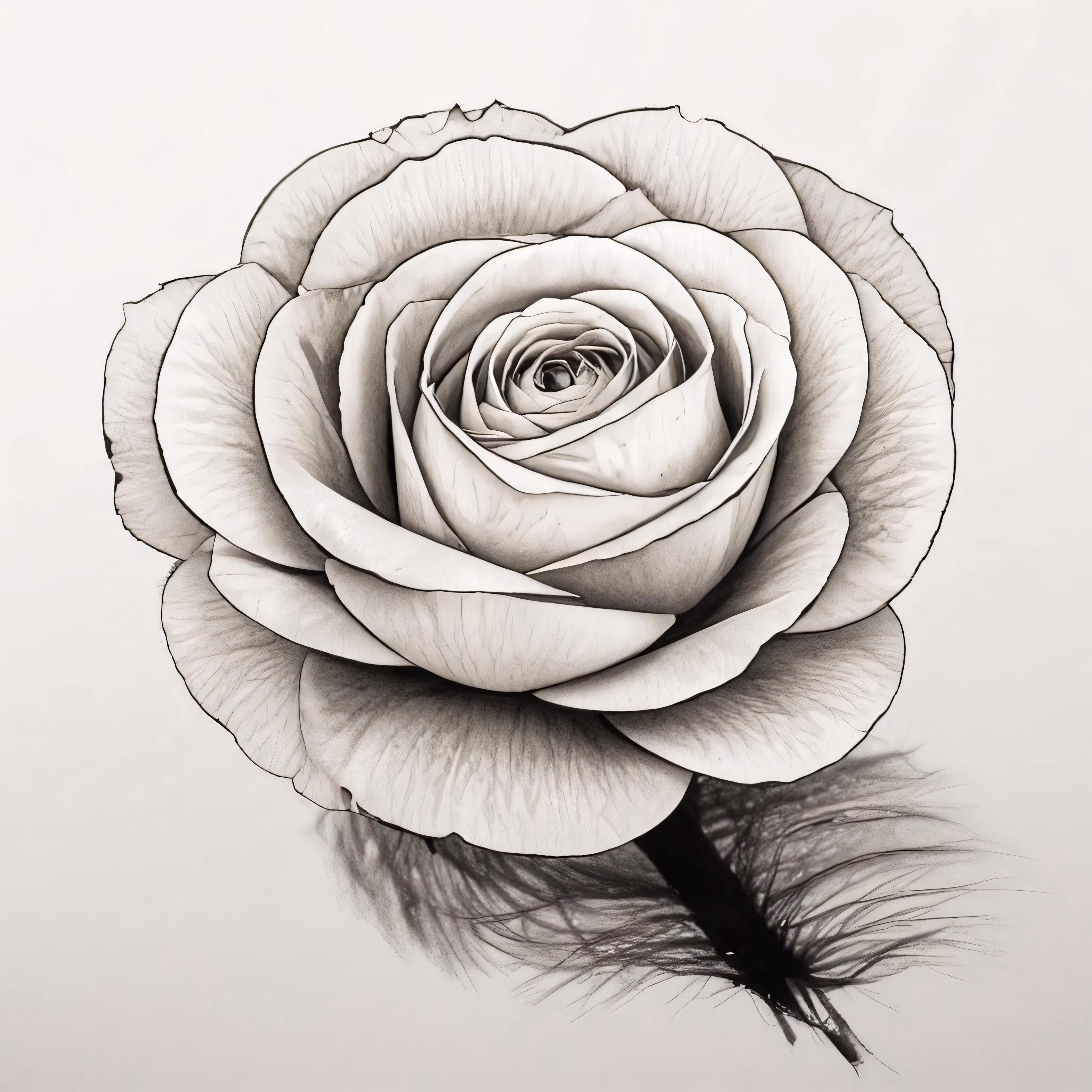 High resolution picture, free to use, a black and white rose with feathers laying on it