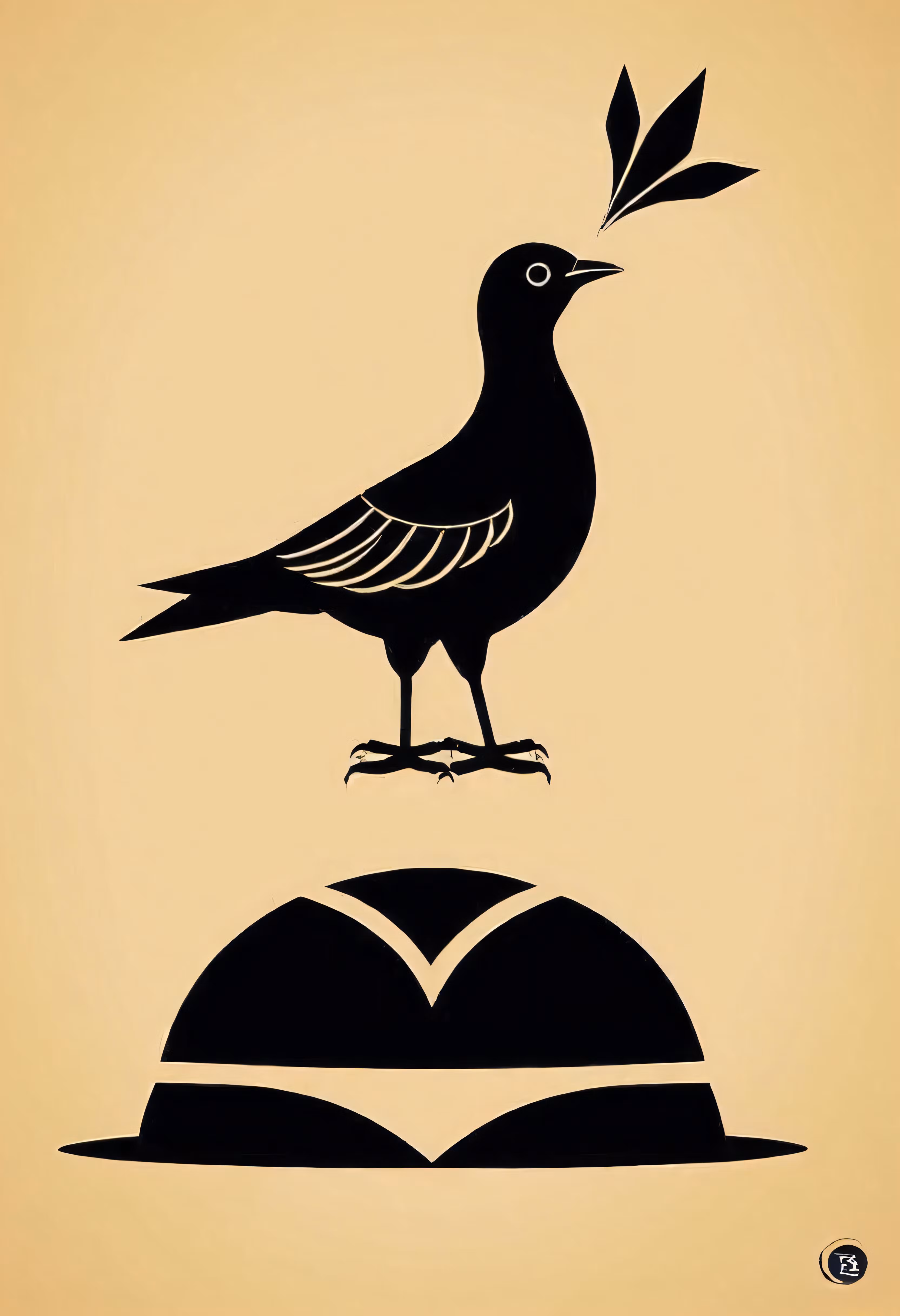 High resolution picture, free to use, a black and white silhouette of a bird sitting on a book