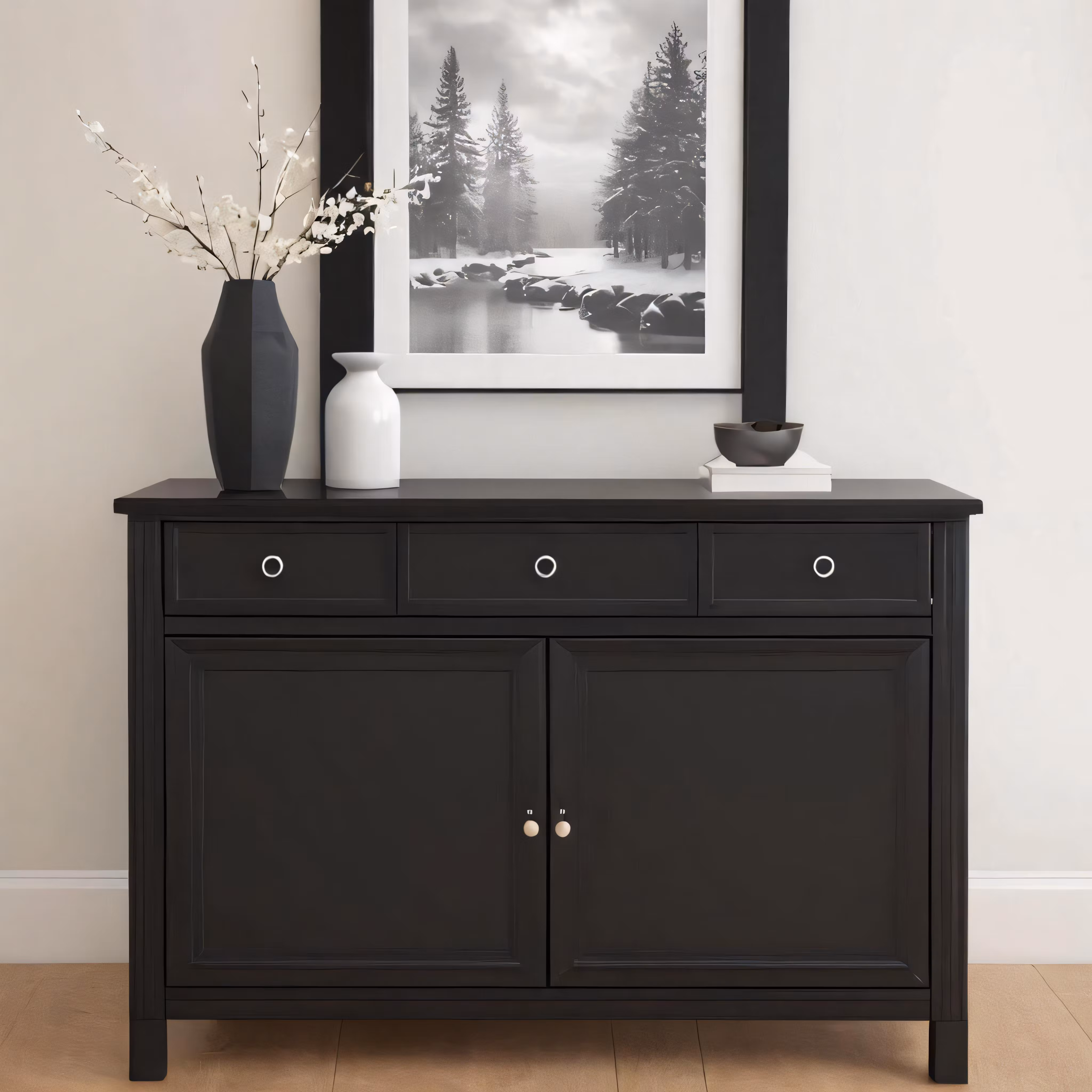 High resolution picture, free to use, a black and white vase is next to a small cabinet