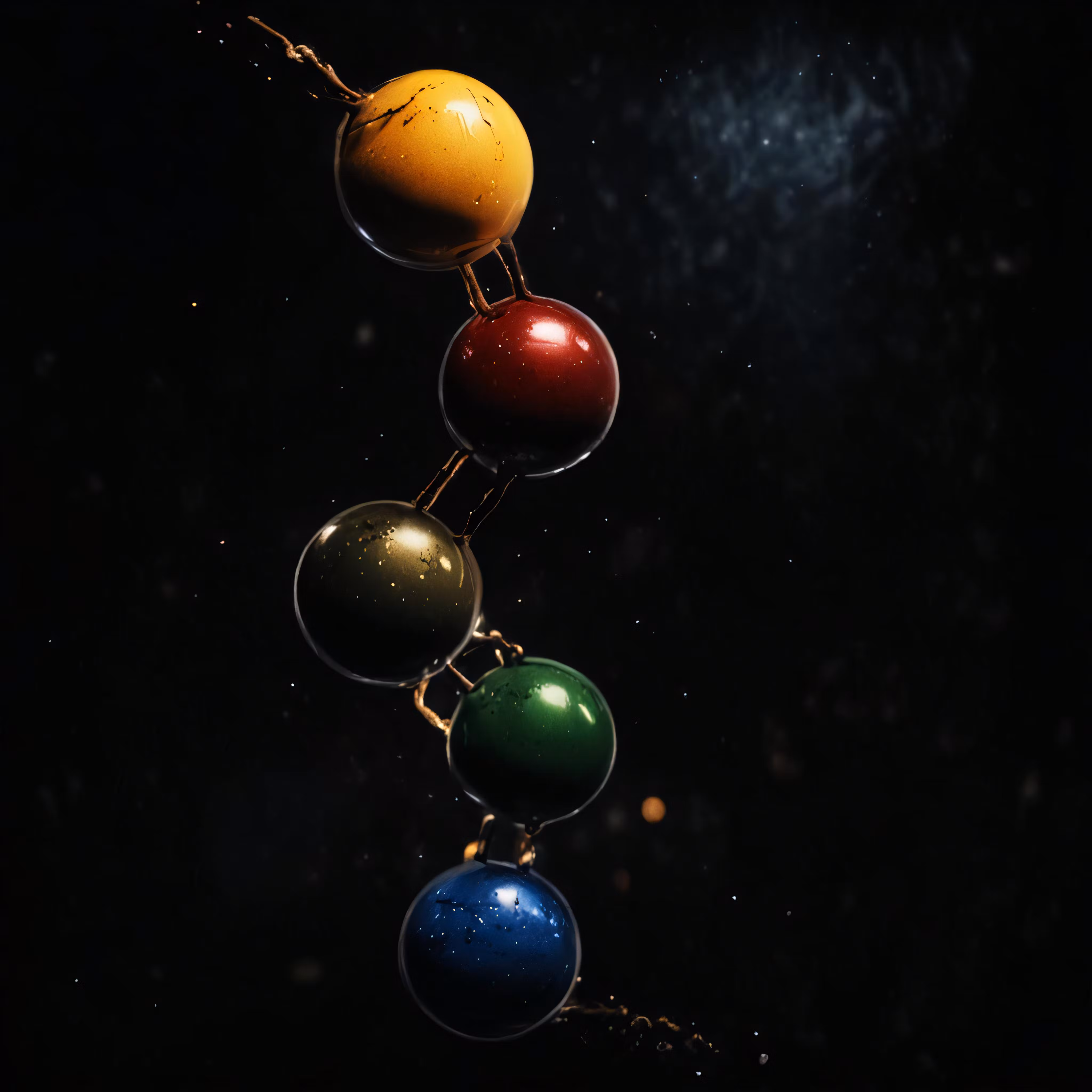High resolution picture, free to use, a black background is the subject of this photo, an image of a multi colored balls, connected to a chain