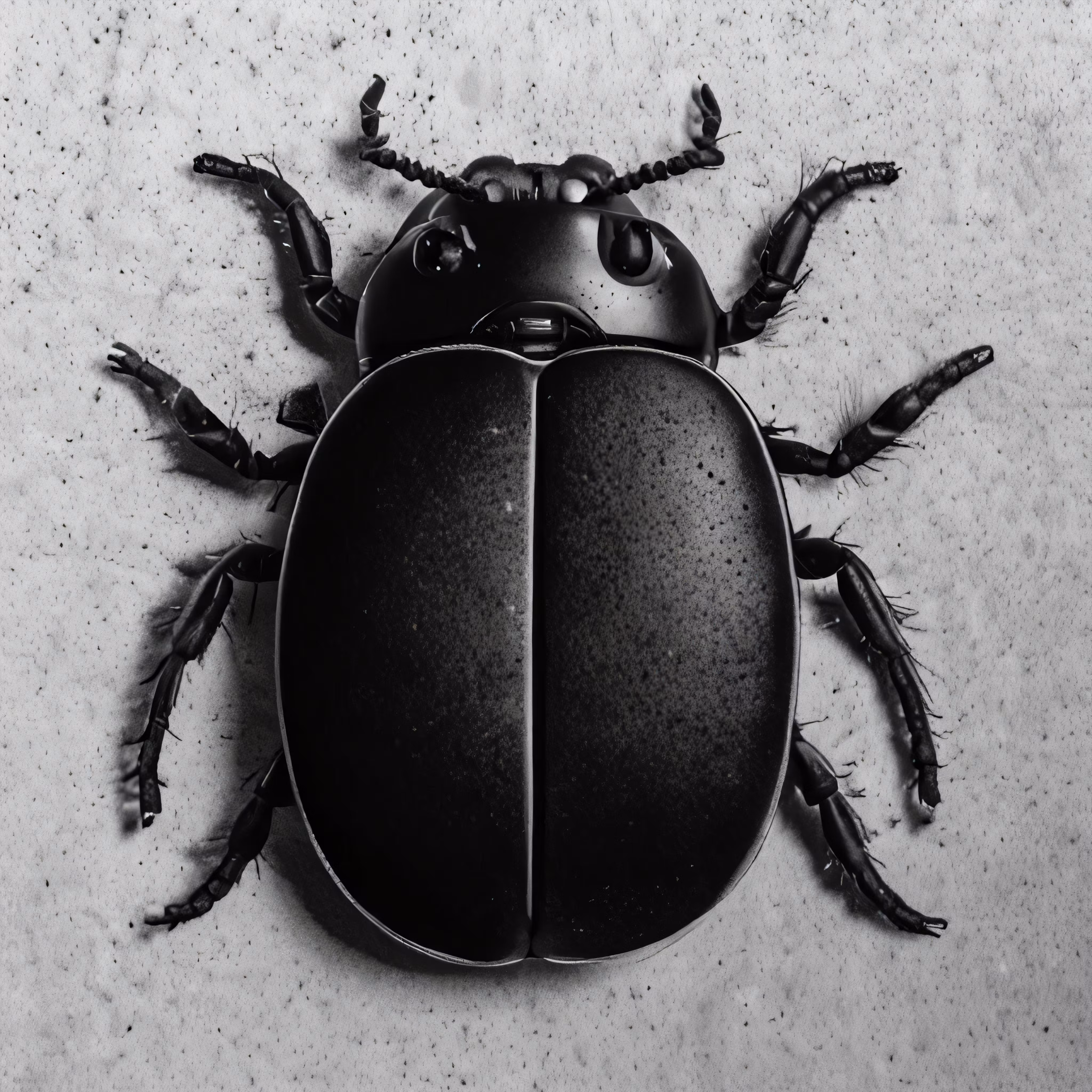 High resolution picture, free to use, a black beetle sitting on top of a white floor