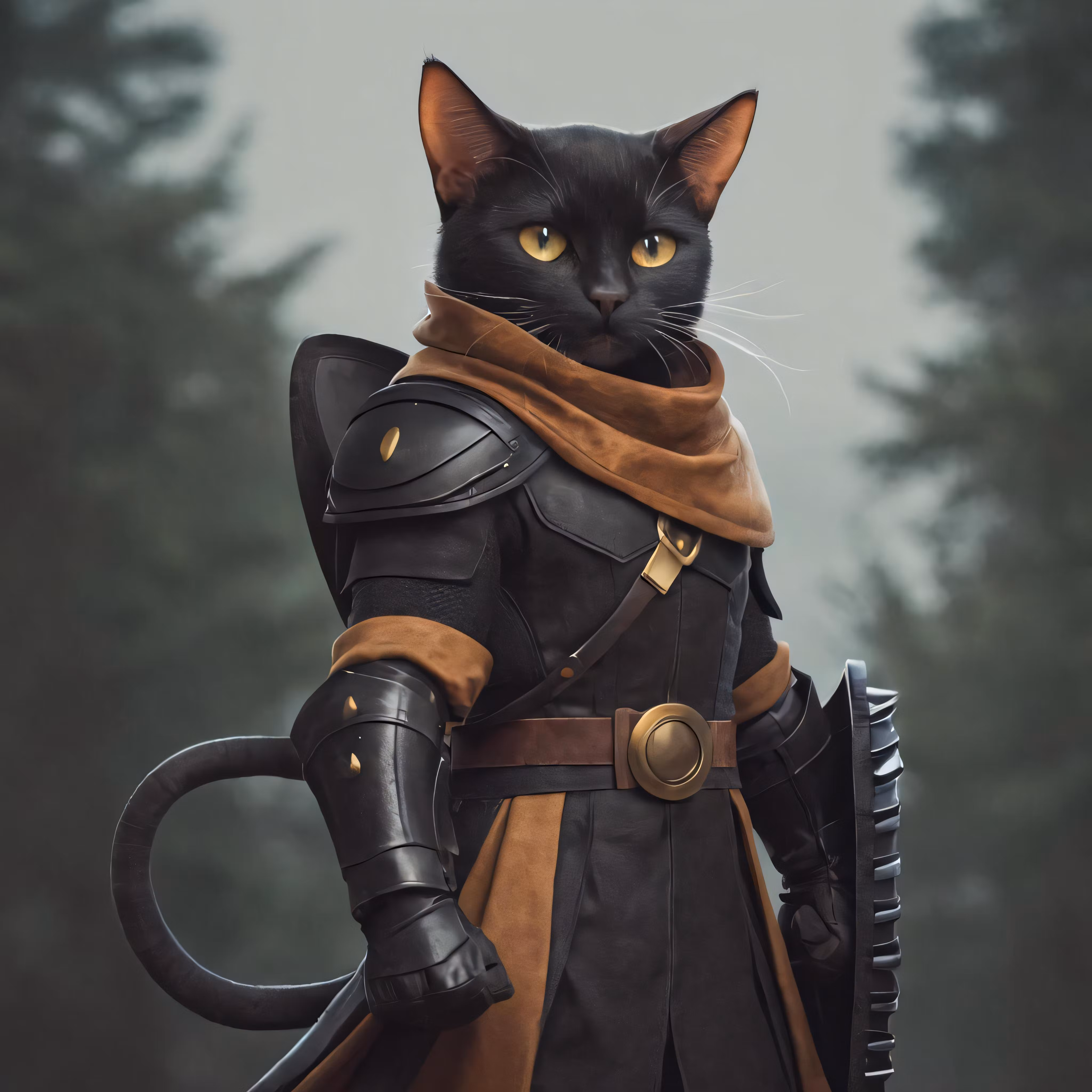 High resolution picture, free to use, a black cat dressed up in a knight outfit