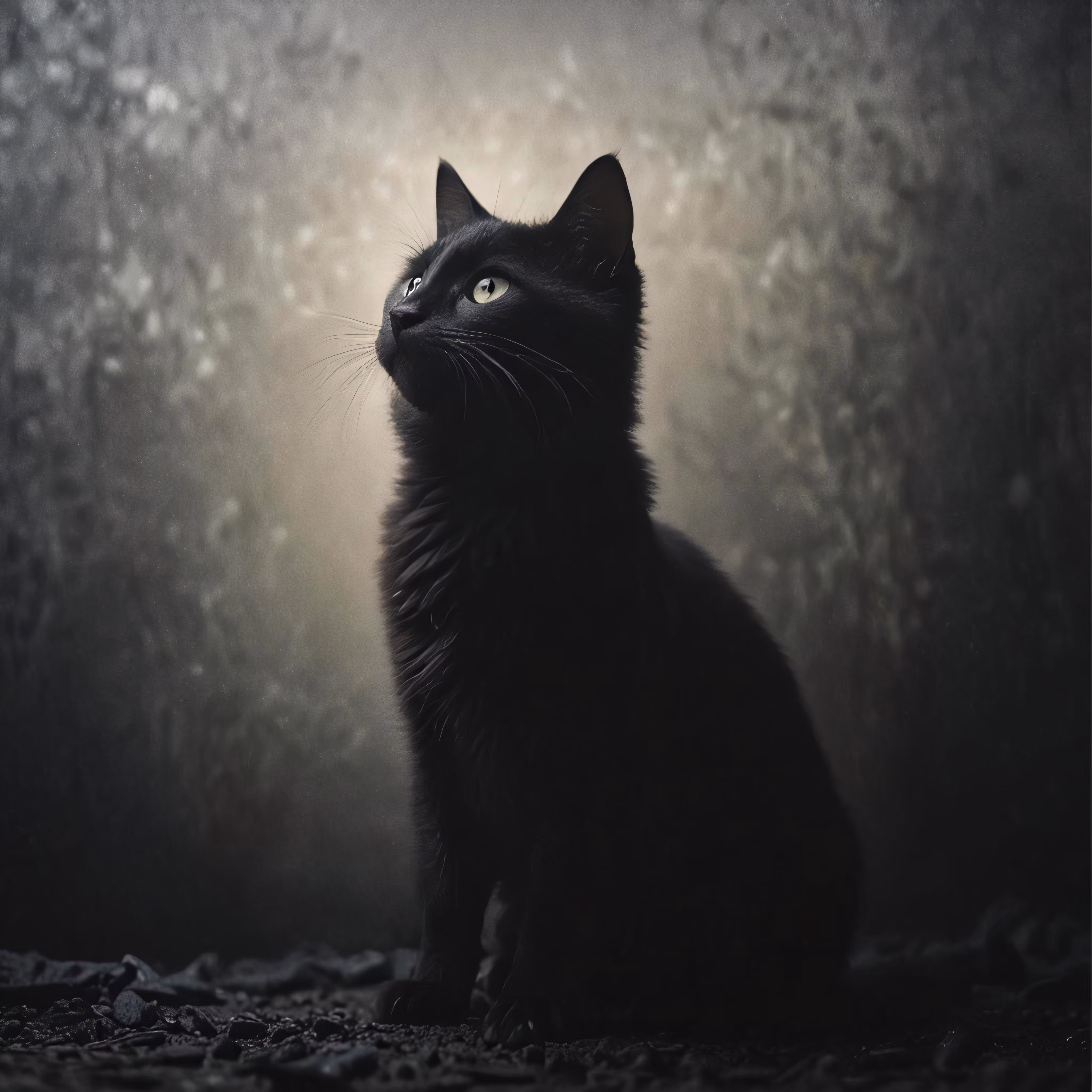 High resolution picture, free to use, a black cat sitting down in the dark