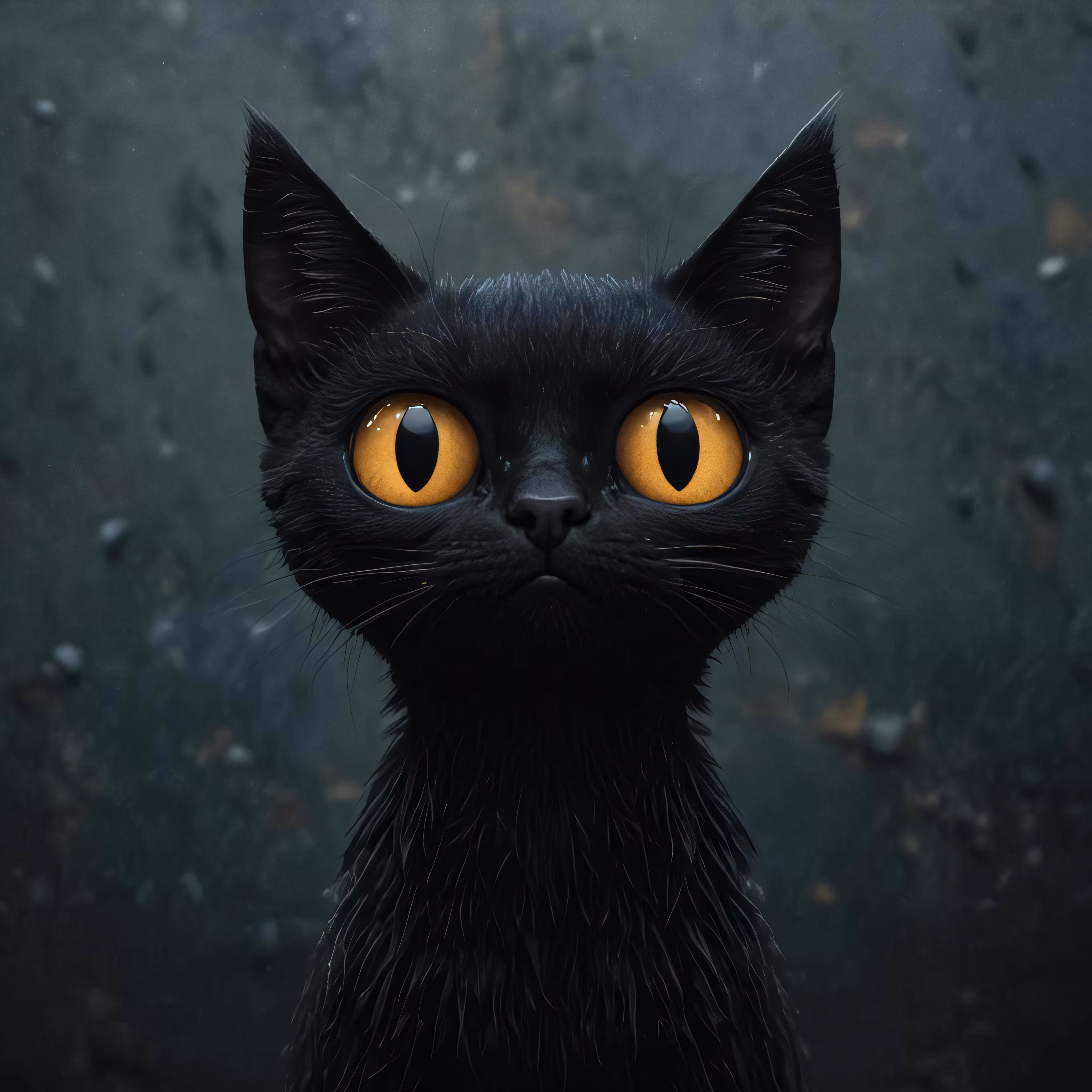 High resolution picture, free to use, a black cat with large yellow eyes and big yellow eyes