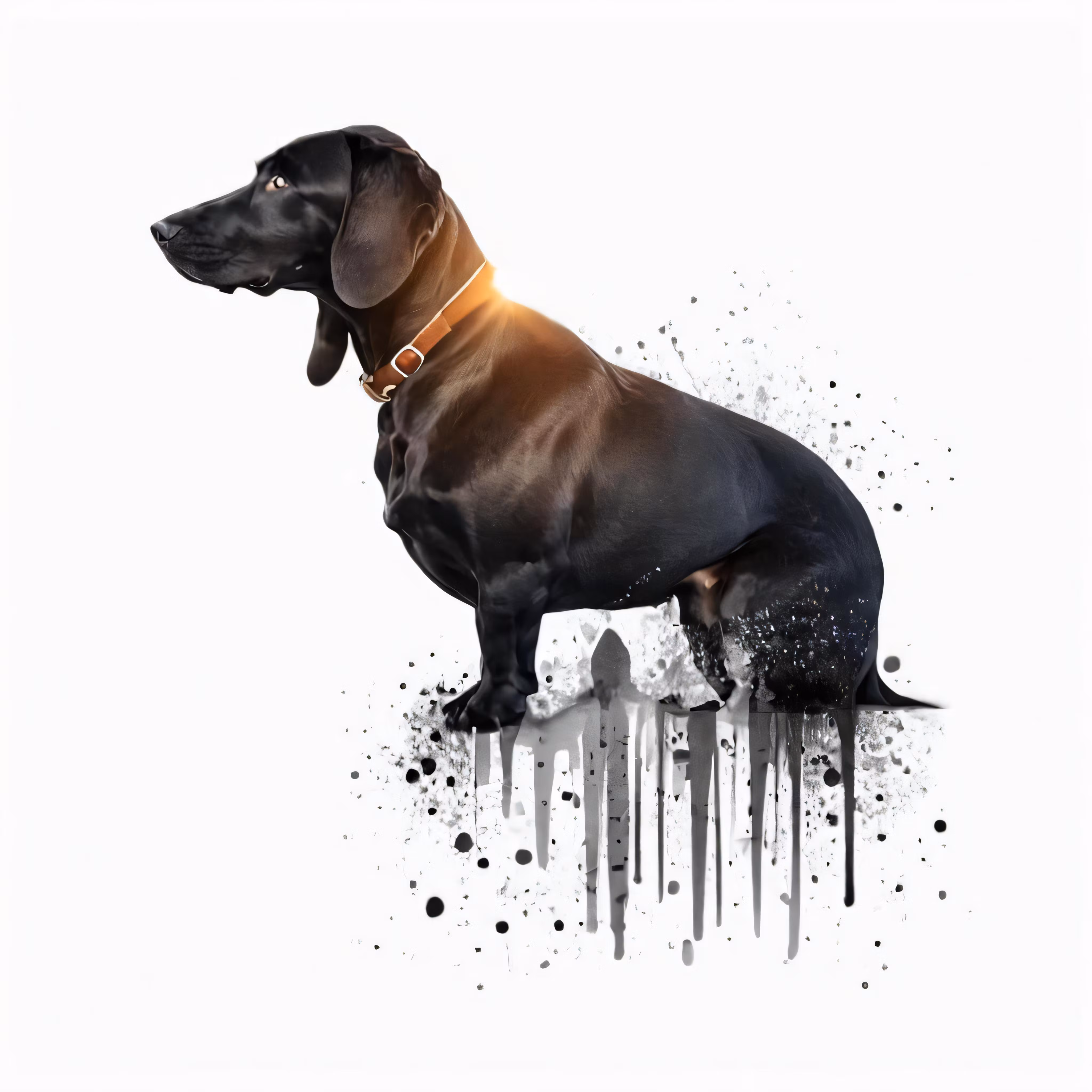 High resolution picture, free to use, a black dog sitting on top of a piece of luggage