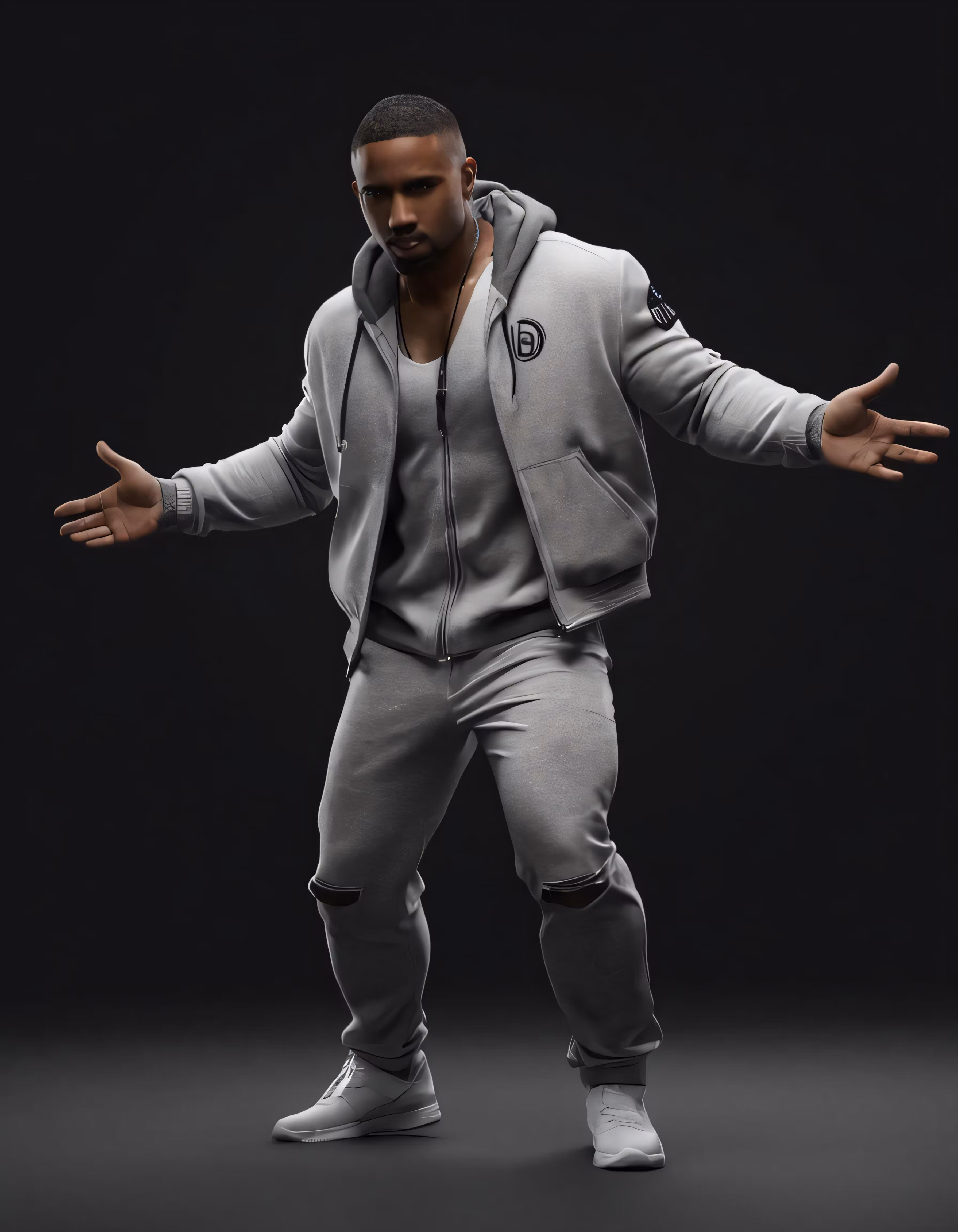 High resolution picture, free to use, a black man in grey tracksuits is standing