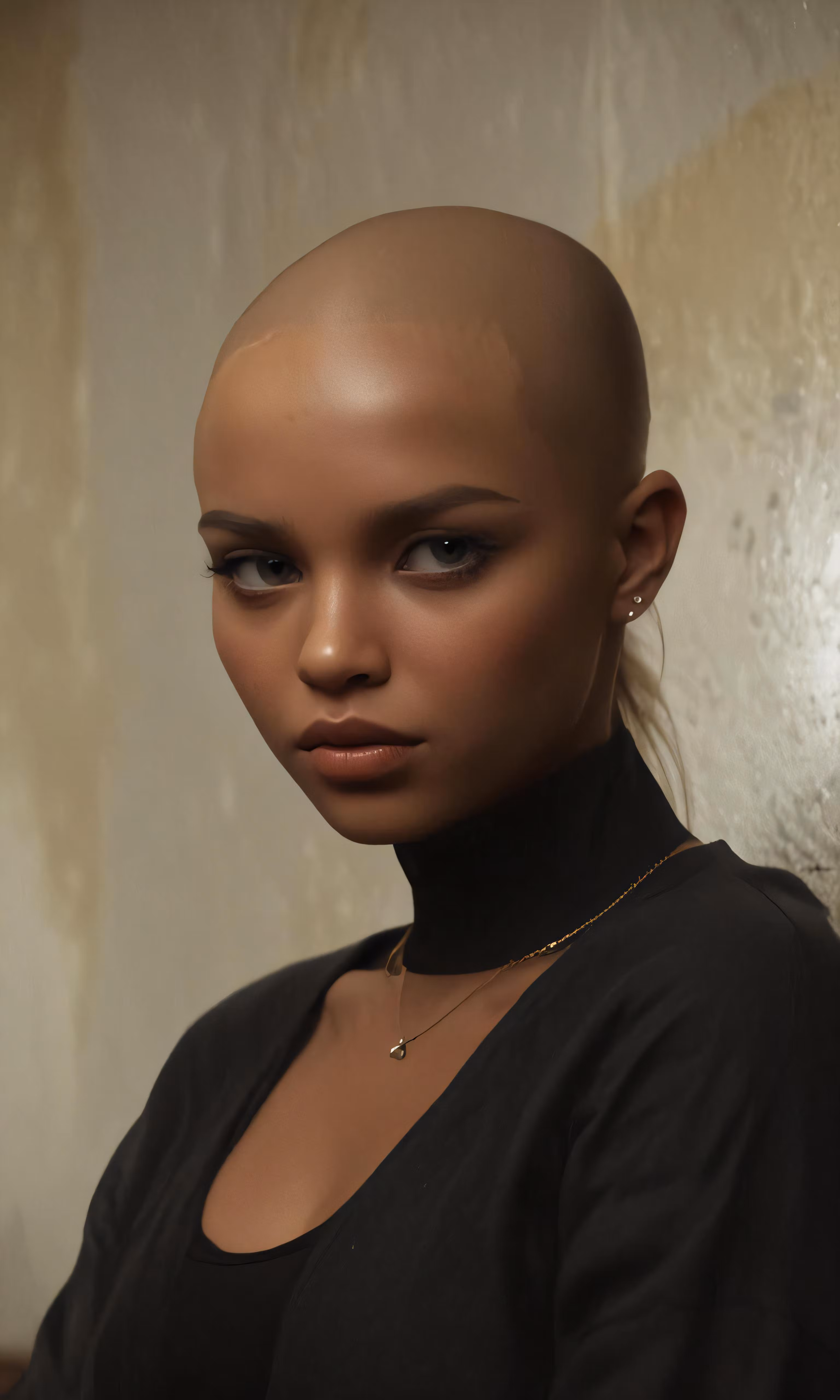 High resolution picture, free to use, a black model in a black top looks straight ahead